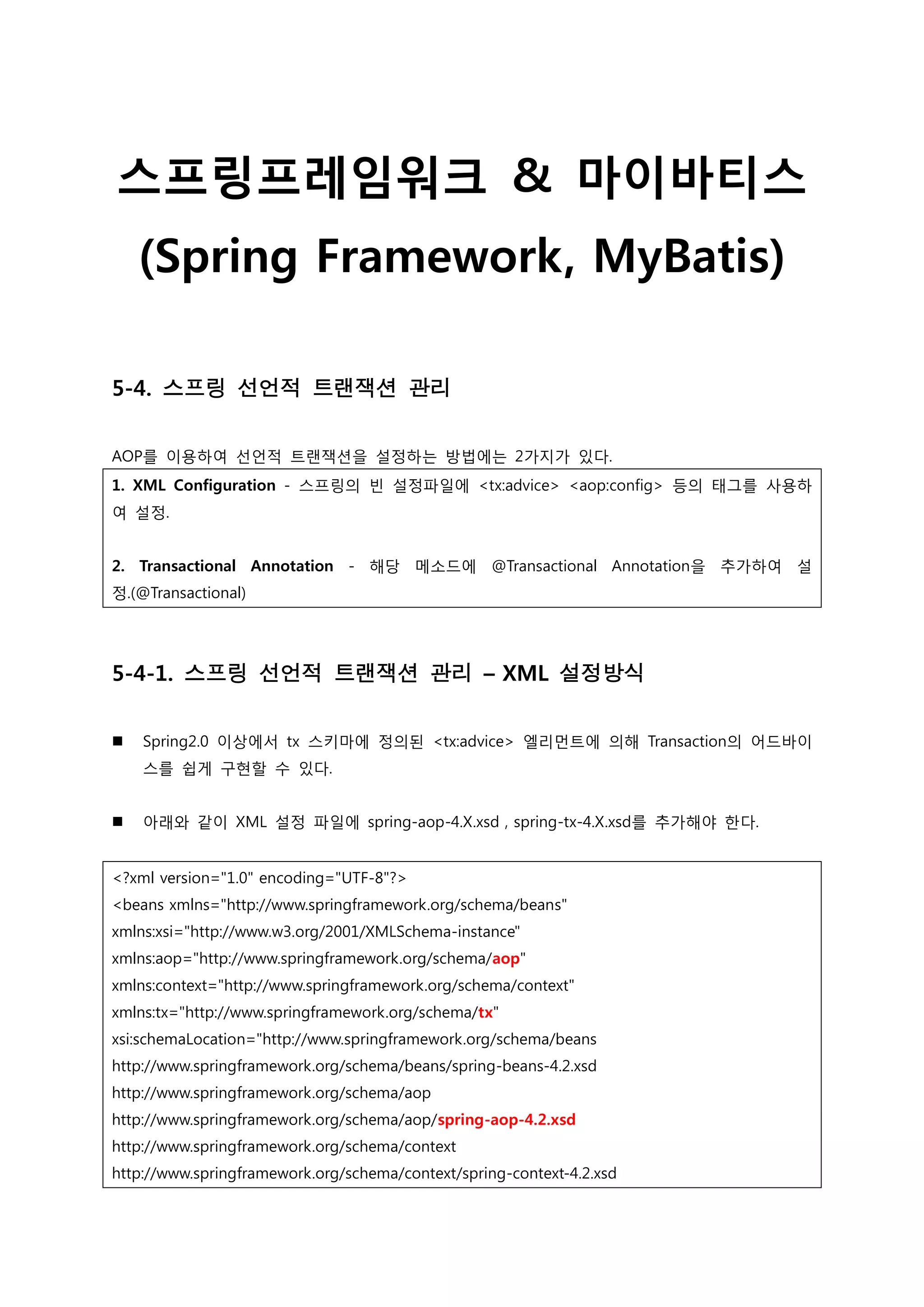 5-4-1. 스프링 선언적 트랜잭션 관리 – XML 설정방식