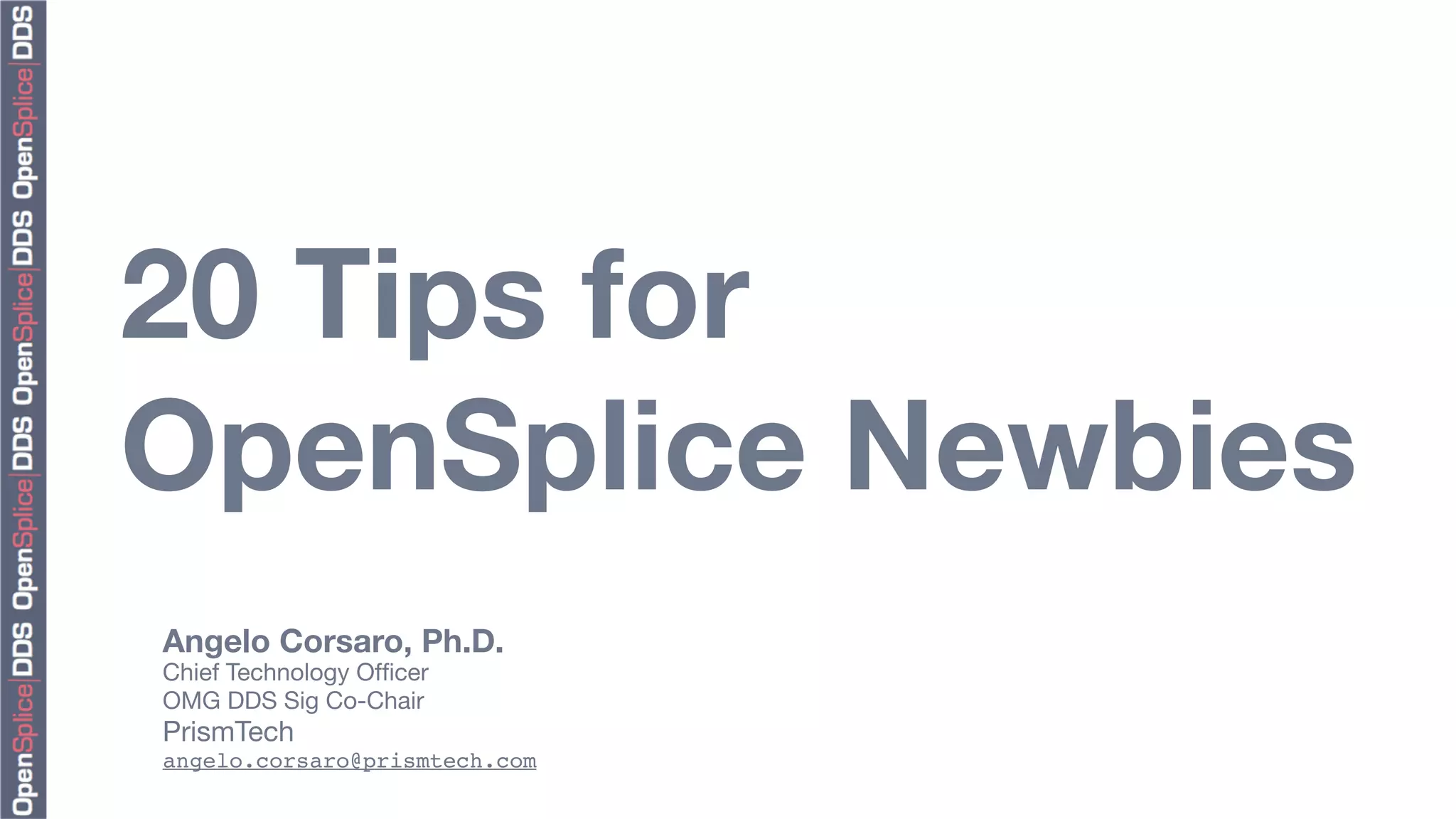 The document provides 20 tips for beginners using OpenSplice, focusing on the fundamentals of domains, partitions, and topics in DDS applications. Key insights include how to choose a domain, configure shared memory, and manage Quality of Service (QoS) settings effectively. Additionally, it emphasizes the importance of understanding lifecycle management and data access methods to enhance application performance.
