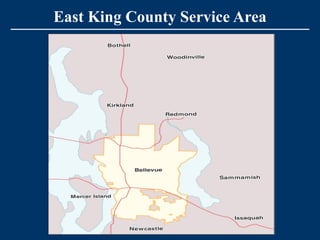 The document summarizes Bellevue's transit plan update, which aims to improve transit services to meet the needs of growing populations and employment. Key findings include that current services have limited hours, infrequent buses, and incomplete coverage. The plan recommends increasing frequencies, extending hours, and improving connections between neighborhoods, downtown Bellevue, and major destinations like Overlake to establish an urban-quality transit network. It also discusses coordinating with regional transit agencies and gathering stakeholder input to develop a comprehensive 6-year implementation strategy.