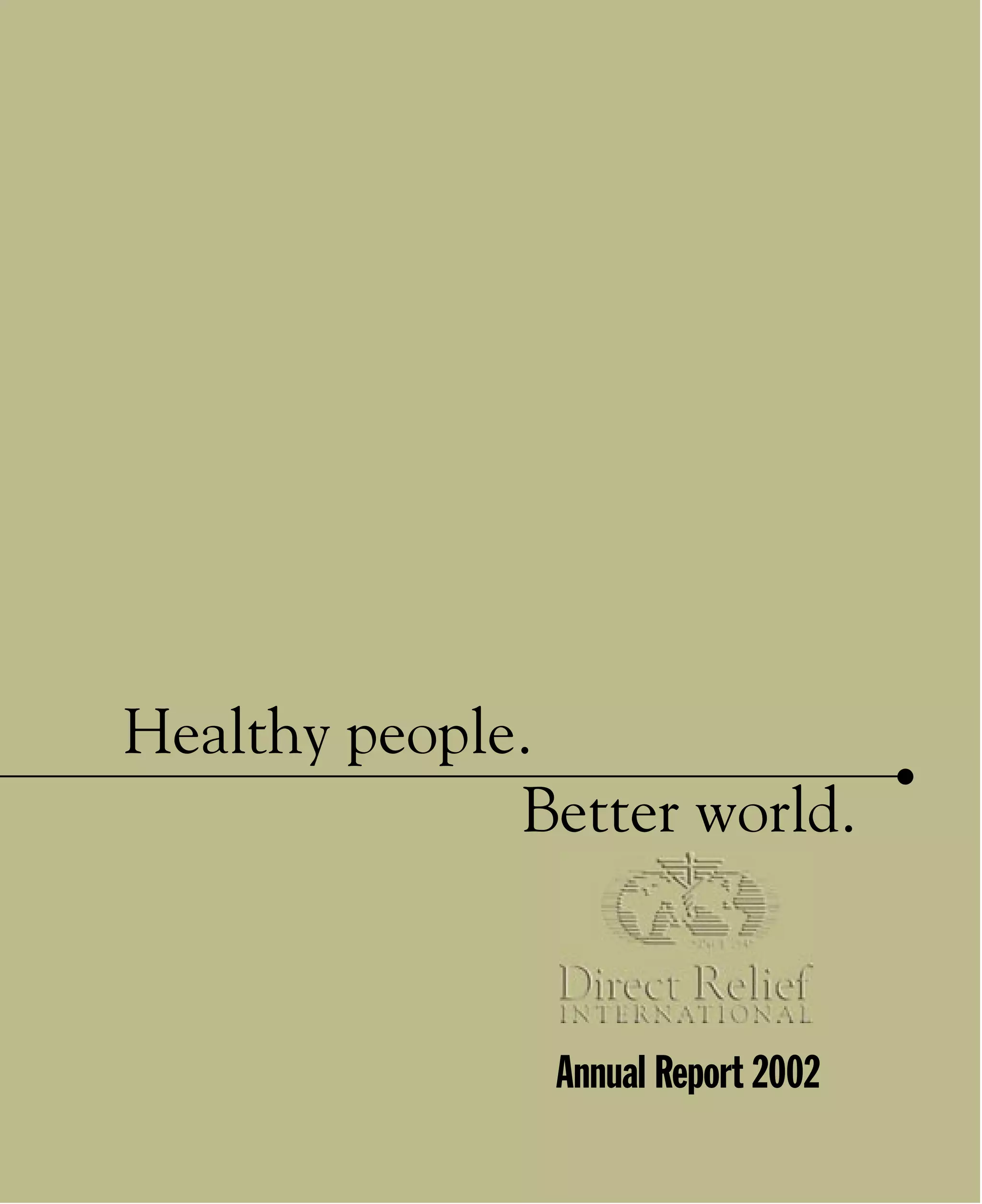 This annual report from Direct Relief summarizes the organization's work in 2002. It provided over $67 million in medical aid to 57 countries. The aid helped care for an estimated 9.7 million people and was distributed through 263 shipments totaling over 900,000 pounds. Direct Relief worked with numerous partner organizations around the world, especially focusing on maternal and child health. The report highlights some of Direct Relief's key partners and projects in countries such as Afghanistan, Bolivia, Cambodia, and El Salvador. It expresses the goal of improving health access in developing areas and supporting local healthcare workers and facilities.