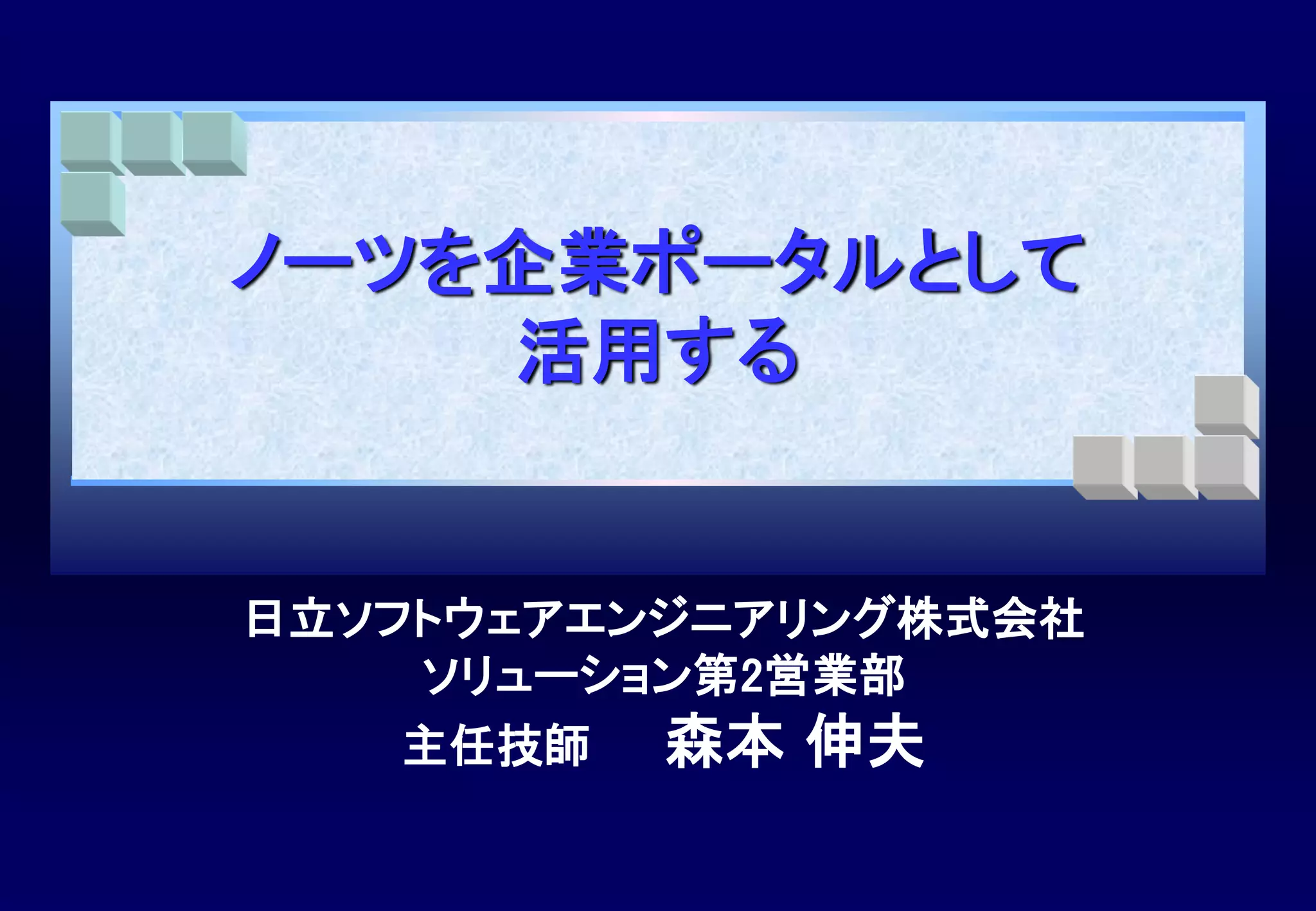 ノーツがもう一度日本を救う会の講演資料。今では大きく変化したものもあるけど、ソーシャルウェアの展開ってことで考えると、全体のコンセプトとしてはまったく変わらないんじゃないかと思う。最後の性能に関する部分はちょっとばかり蛇足かなw
