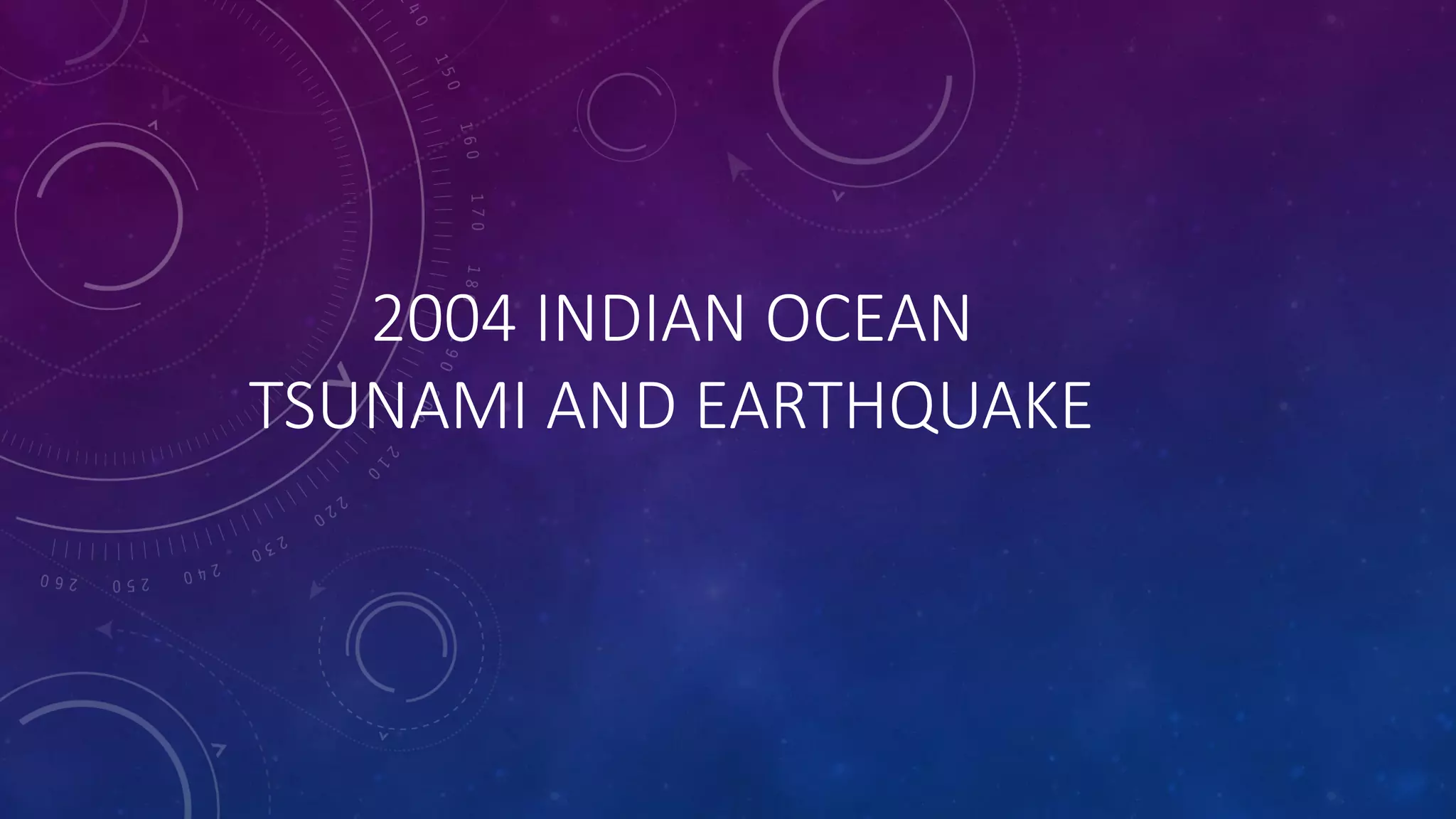 An undersea earthquake off the coast of Sumatra, Indonesia triggered a devastating tsunami on December 26, 2004 that impacted 14 countries around the Indian Ocean. The earthquake was the third largest ever recorded and triggered tsunamis with waves as high as 12 meters that killed over 230,000 people. Indonesia was the worst hit country with over 170,000 deaths. The tsunami caused widespread damage to infrastructure, loss of livelihoods from fishing and tourism, and major environmental impacts from saltwater contamination. International humanitarian aid exceeded $14 billion to help provide relief and recovery efforts for the over 1.7 million people displaced.