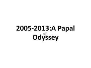This document is a lighthearted presentation by Pope Benedict XVI poking fun at some of the elaborate hats and vestments he had to wear as Pope. It consists of a series of photos of Benedict in various papal outfits and accessories, with captions commenting on their impracticality or how they restricted his vision and movement. In the end, he jokes that as Pope Francis he has negotiated to wear simpler outfits and have Mondays and Tuesdays free from unusual vestments.