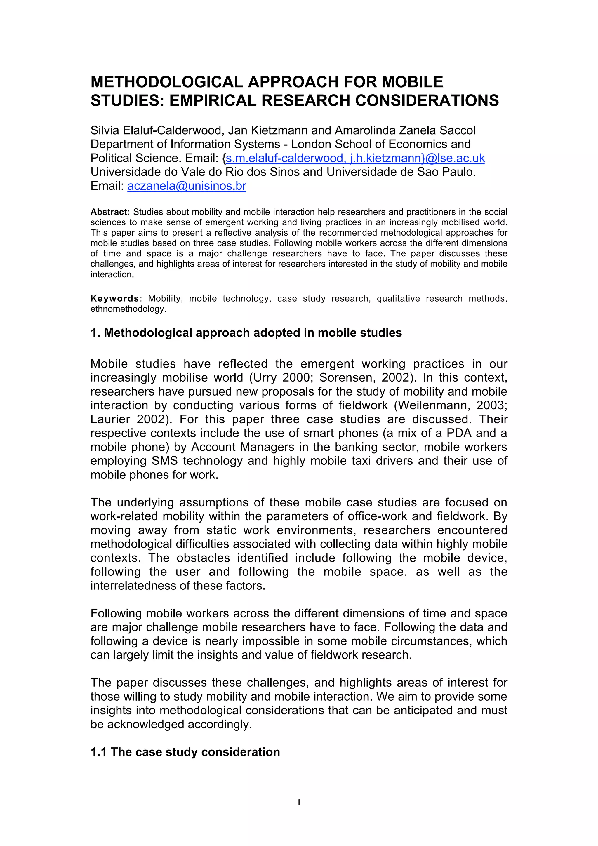 This paper presents methodological considerations for conducting mobile studies, emphasizing the challenges associated with following mobile workers and collecting data in dynamic environments. Through three case studies, it highlights the importance of an interpretivist approach and ethnomethodology in understanding mobility and mobile technology use among workers. The research reveals that traditional static methods are inadequate for capturing the complexities of mobile work, necessitating innovative data collection strategies.