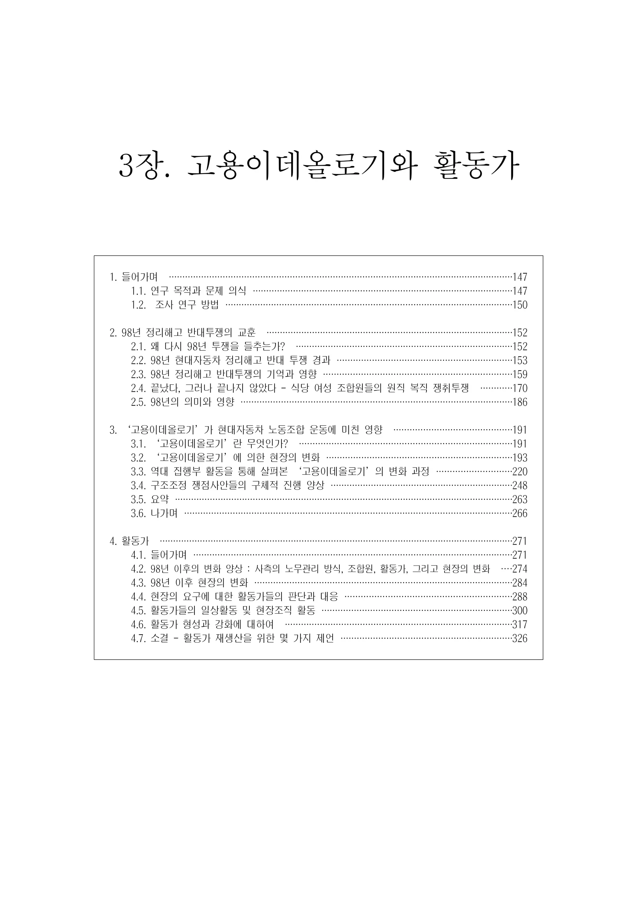3. ‘고용이데올로기’가 현대자동차 노동조합 운동에 미친 영향 ···········