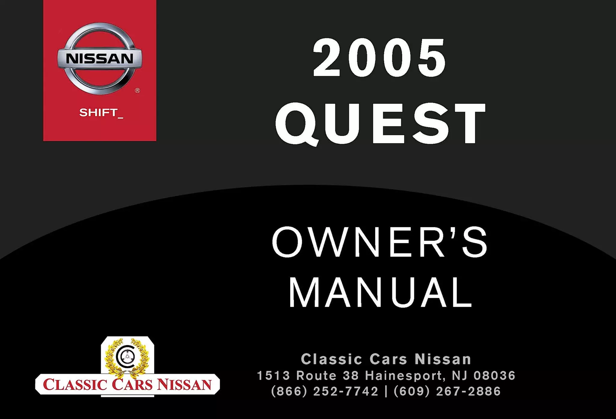 The document serves as an owner's manual for the Nissan Quest van, emphasizing the importance of reading the manual for safe vehicle operation and maintenance. It provides essential safety information, driving rules, and details about the quality and production of the vehicle, as well as Nissan's commitment to customer satisfaction and care. The manual also alerts users to governmental regulations regarding vehicle modifications and the potential hazards of certain vehicle components.