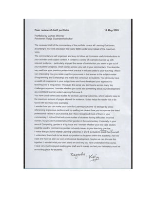 This document presents a portfolio from Dr. James Cunha Werner demonstrating his qualifications for a certificate in learning and teaching. It summarizes his experiences teaching C programming laboratories at the University of Manchester and Imperial College. The document outlines Werner's approach to designing learning activities, which involves understanding learning theories and the requirements students will face. It also describes how he carried out support for learning through constructive feedback and assessment. Diagrams and examples are provided as evidence of Werner's abilities in areas like lesson planning, student support, reflection, and using strategies like mind maps to enhance teaching.