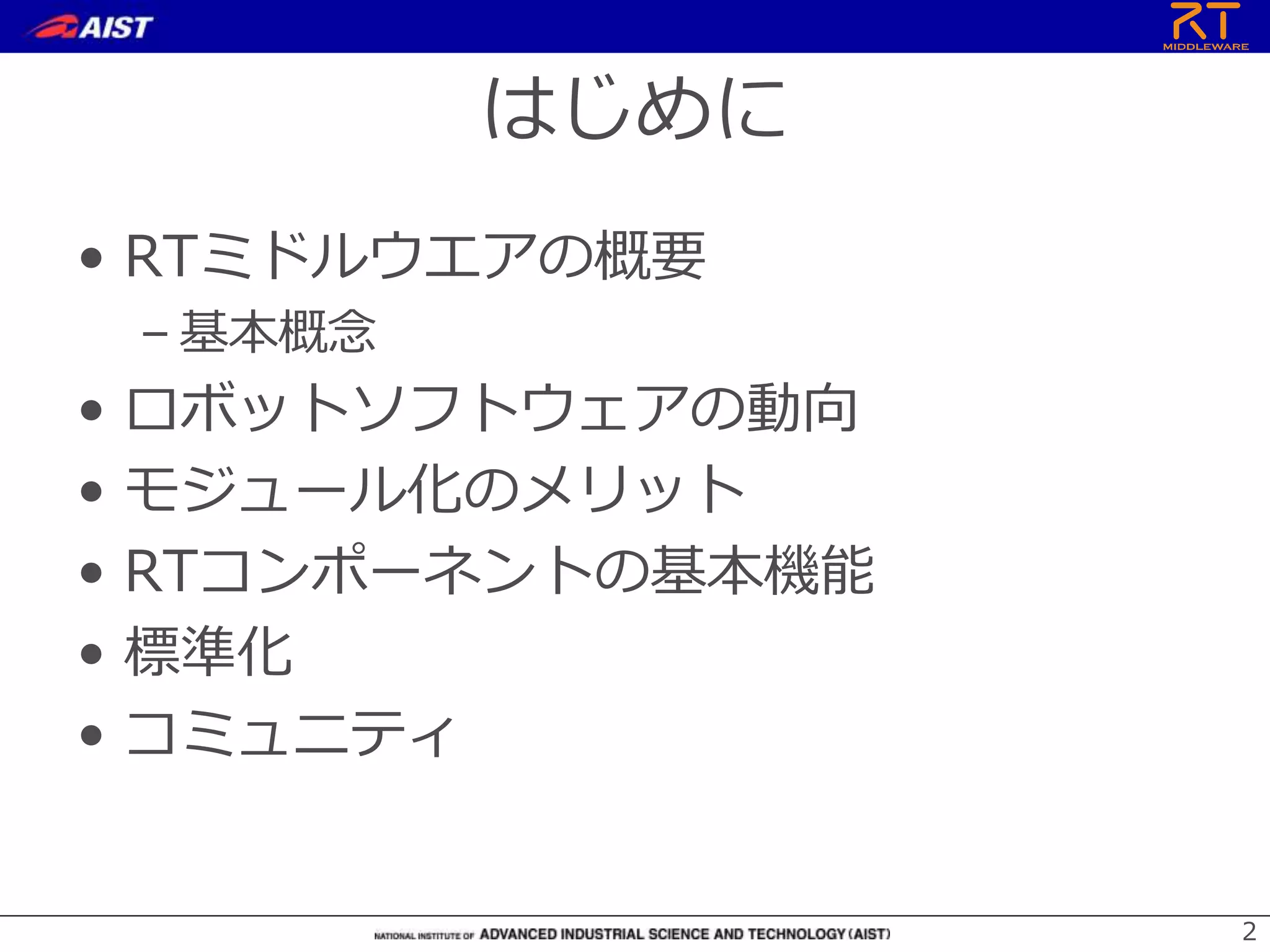 RTミドルウェアは国際標準 名称 ベンダ 特徴