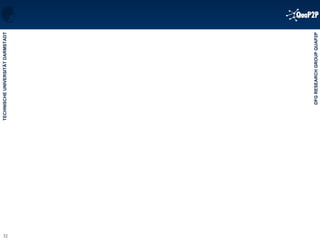 The document provides an overview of different peer-to-peer network principles including unstructured and structured networks. Unstructured networks include centralized networks with a single index server, distributed networks without indexes, and hybrid networks that combine centralized servers and distributed indexing. Structured networks organize peers and objects into distributed hash tables (DHTs) to allow lookups to find objects in logarithmic time.
