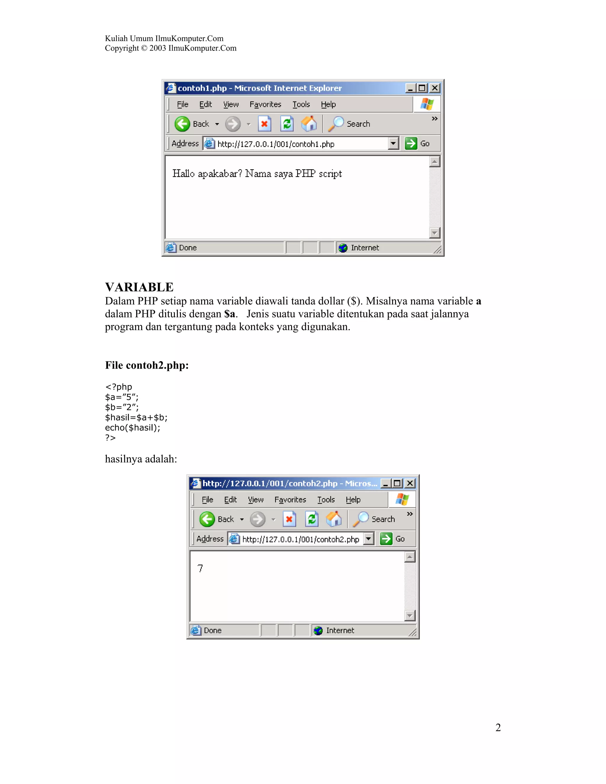 Modul pertama membahas pengenalan PHP dan sintaks dasar seperti variabel, struktur kontrol if-else, while, for, switch, dan menghubungkan file PHP. Modul kedua menjelaskan dasar-dasar MySQL seperti tipe data, membuat database dan tabel, menambahkan data, dan menghubungkan PHP dengan MySQL.
