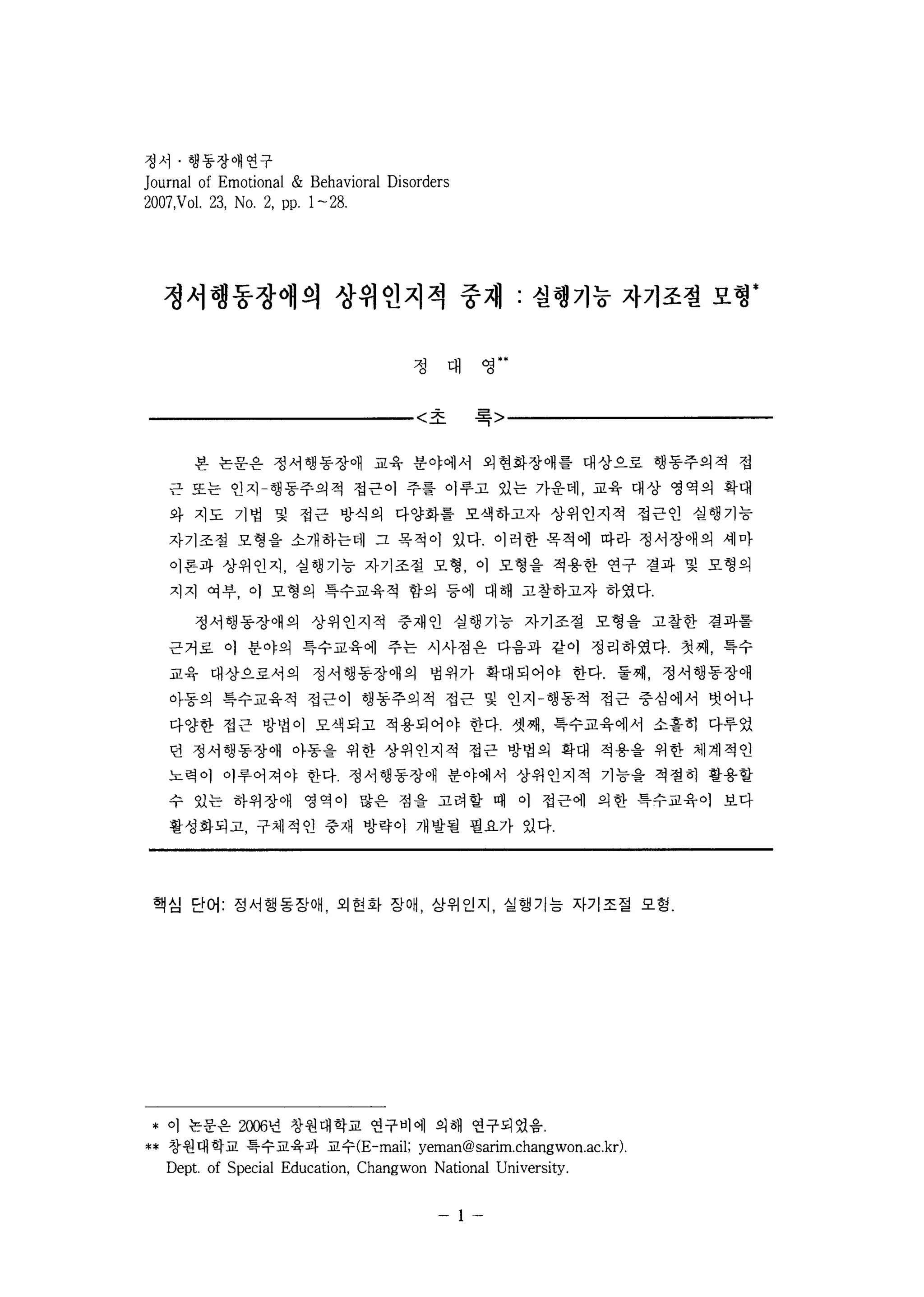 ** 창원대학교 특수교육과 교수(E-mail; yeman@sarim.changwon.ac.kr ).