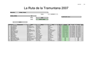 El Balis - Rosas Fecha 06/07/2007 TOTAL YATES 23 CLASIFICACION ALFA 2 Millas 85,0 Salida 06/07/07 18:00:00 ALFA 2 Embarcación Serie Patrón Club TCC Llegada % T. real T.comp. Cl. A2 081 TRAMENDU DEHLER 36 Salvador Vieta CV Blanes 1,0136 07/07/07 07:59:15 00/ 13:59:15 00/ 14:10:40 1 A2 011 SI NO FOS SEAQUEST 36 Q.B. Aureli Bisbe RCNB 1,0718 07/07/07 07:20:59 00/ 13:20:59 00/ 14:18:30 2 A2 054 REBUFFF ARCHAMBAULT A 35 David Marcó CN Port d'Aro 1,0447 07/07/07 07:57:09 00/ 13:57:09 00/ 14:34:34 3 A2 002 DESAFINO X 35 Miquel Colomer RCNB 1,0540 07/07/07 07:54:59 00/ 13:54:59 00/ 14:40:04 4 A2 064 ENIGMA FIRST 36,7 Luis Tort CN Premia 1,0342 07/07/07 08:36:46 00/ 14:36:46 00/ 15:06:45 5 A2 041 JOIA ARCHAMBAULT A 35 Pierre Calvet YC Canet en Roussillon 1,0805 07/07/07 08:20:45 00/ 14:20:45 00/ 15:30:02 6 A2 053 TRAMONTANA GRAND SURPRISE QB Alex Friess Ones Club Esportiu 1,0750 07/07/07 08:27:57 00/ 14:27:57 00/ 15:33:03 7 A2 029 L'OREIG UNO FIRST 31,7 Marti Gelabert CN Port d'Aro 0,9500 07/07/07 10:40:23 00/ 16:40:23 00/ 15:50:22 8 A2 049 LESSISMORE J92 S Antoni Sala Independent 1,0150 07/07/07 09:58:49 00/ 15:58:49 00/ 16:13:12 9 A2 026 SISET BAVARIA 36 PTE Joaquim Torres CN Llança 0,9497 07/07/07 11:46:20 00/ 17:46:20 00/ 16:52:42 10 A2 082 AIRON SUN ODYSSEY 37 Jordi Espejo CV Palamos 0,9454 07/07/07 12:09:07 00/ 18:09:07 00/ 17:09:39 11 A2 038 LA BRUJA ELAN 333 Federico Hernandez CM Port Ginesta 0,9565 07/07/07 12:10:24 00/ 18:10:24 00/ 17:22:58 12 AG2 058 SAMBA GRAND SURPRISE QB Cesar Rodriguez CV Golfus 1,0690 07/07/07 12:00:16 00/ 18:00:16 00/ 19:14:48 13 A2 078 POVLSEN MALBEC 360 Jesús Murugarren CM Port Ginesta 1,0400 07/07/07 13:21:55 00/ 19:21:55 00/ 20:08:24 14 A2 048 XAMAR QUATRE DUFOUR 325 Grand Llague Esteve Vallribera CV Palamos 0,9370 DNF DNF 15 A2 063 DANAE TERCERO BAVARIA 39 Cruiser Felix Calderon RCMB 0,9780 DNF DNF 15 AG2 043 TUNANTE PRIMER BAVARIA 30 Cruiser Iván Suárez Independent 0,9316 DNF DNF 15 AG2 066 ELS MENUTS RO 330 PTE Jacint Casals CN L'Atmella de Mar 0,9180 DNF DNF 15 Cod.Num La Ruta de la Tramuntana 2007