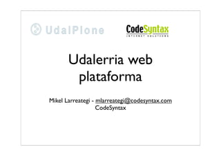 CodeSyntax is a web development company based in Spain that has been in business since 2000. They specialize in creating corporate websites, intranets, and medium-sized content management systems. They have 13 employees including 8 engineers and 2 designers. Many of their clients are public administration organizations, medium-sized businesses, associations, and universities. For public administration clients, they have created many multilingual websites using the Zope platform. They are now also working with Plone and collaborating with PloneGov on projects for European public administration needs such as meeting arrangements and directories.