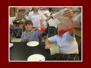 Science students at St. Anthony Catholic School made edible cells in 2008. They created different cell structures out of various foods to learn about the parts of the cell and how they function. The students were able to taste and see the inner workings of the cell through their edible models.