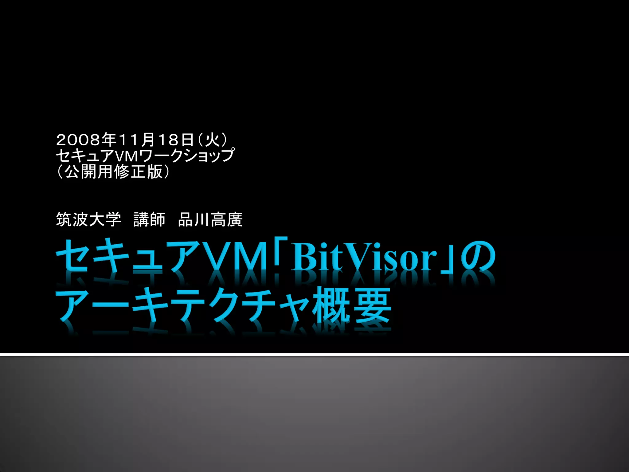 2012-08-28 アカデミッククラウドシンポジウム(公開版)「クライアント向け仮想化ソフトウェアBitVisorのクラウドへの応用」