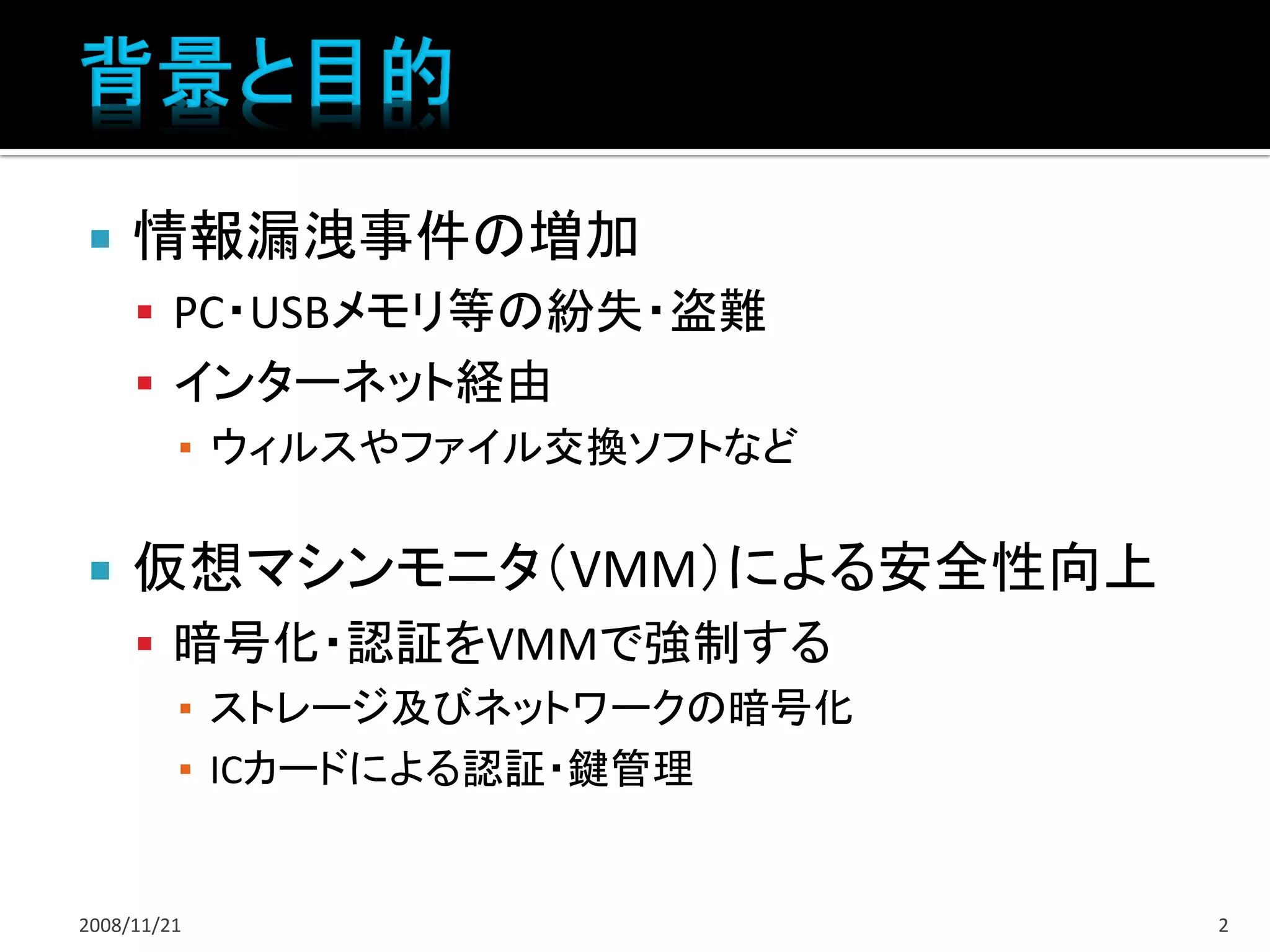 2008-11-18 セキュアVMワークショップ 1. 2. 情報漏洩事件の増加