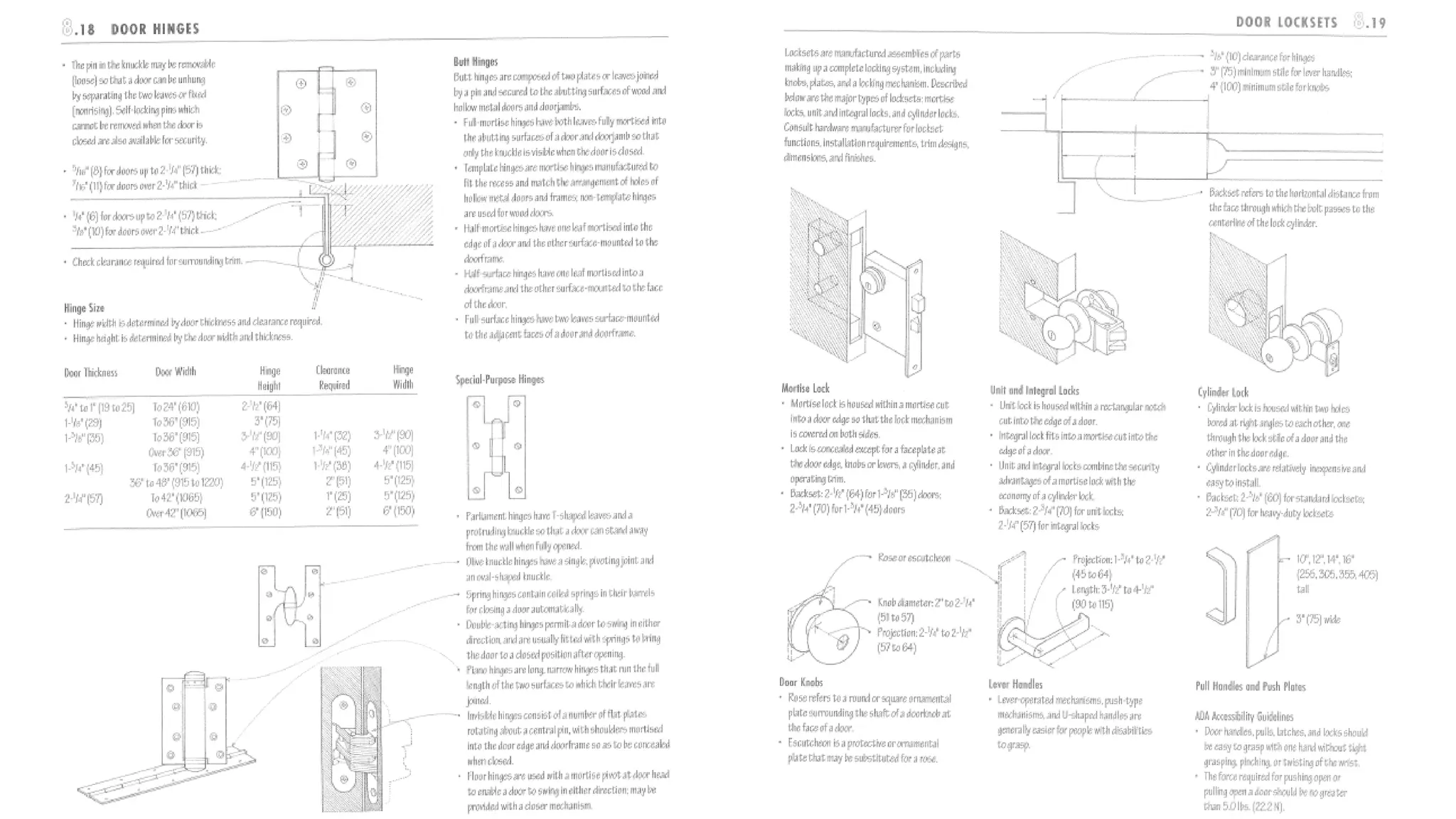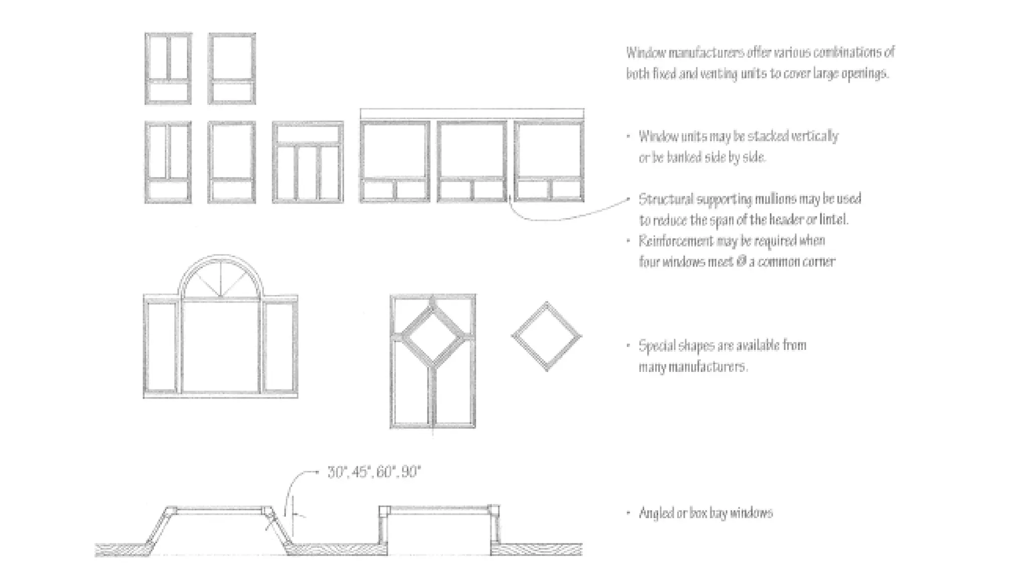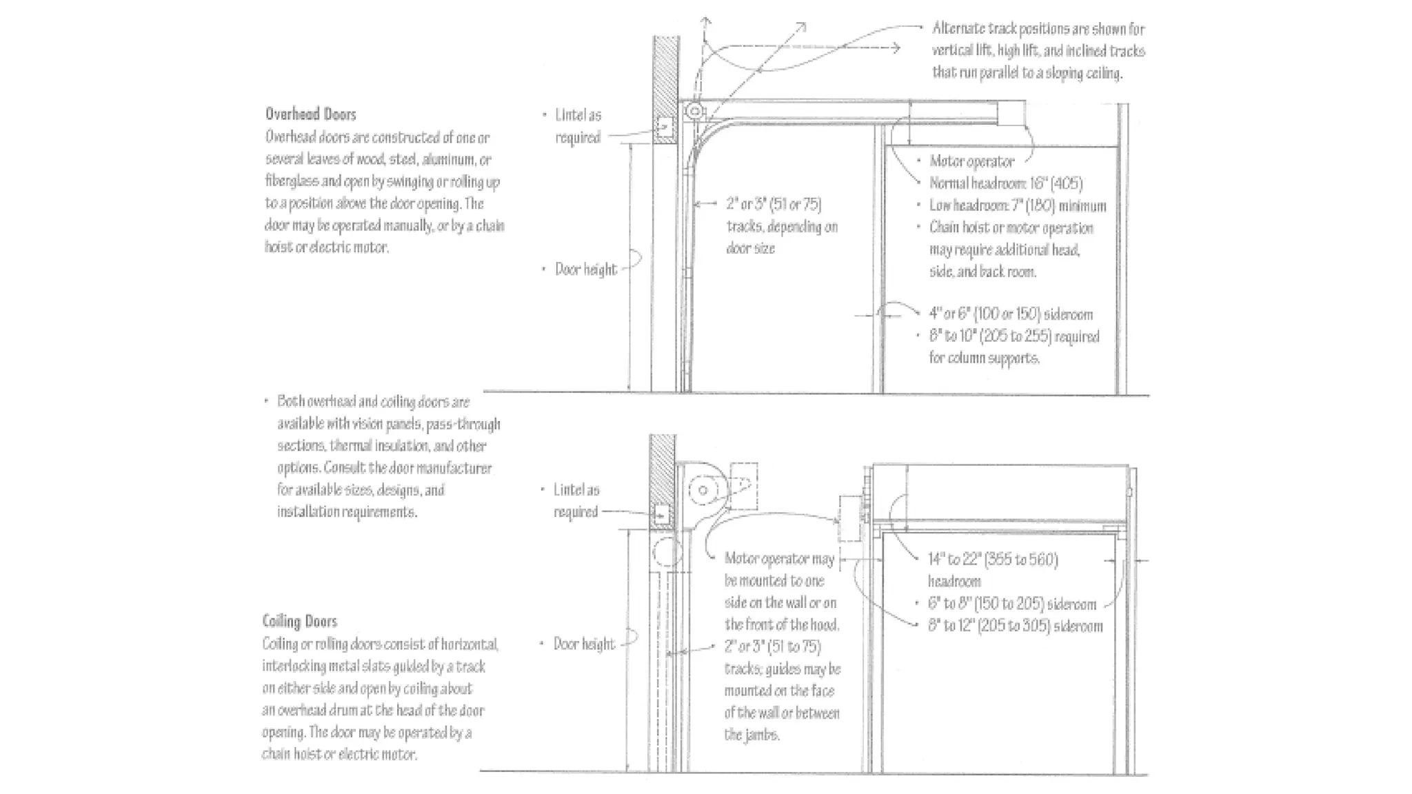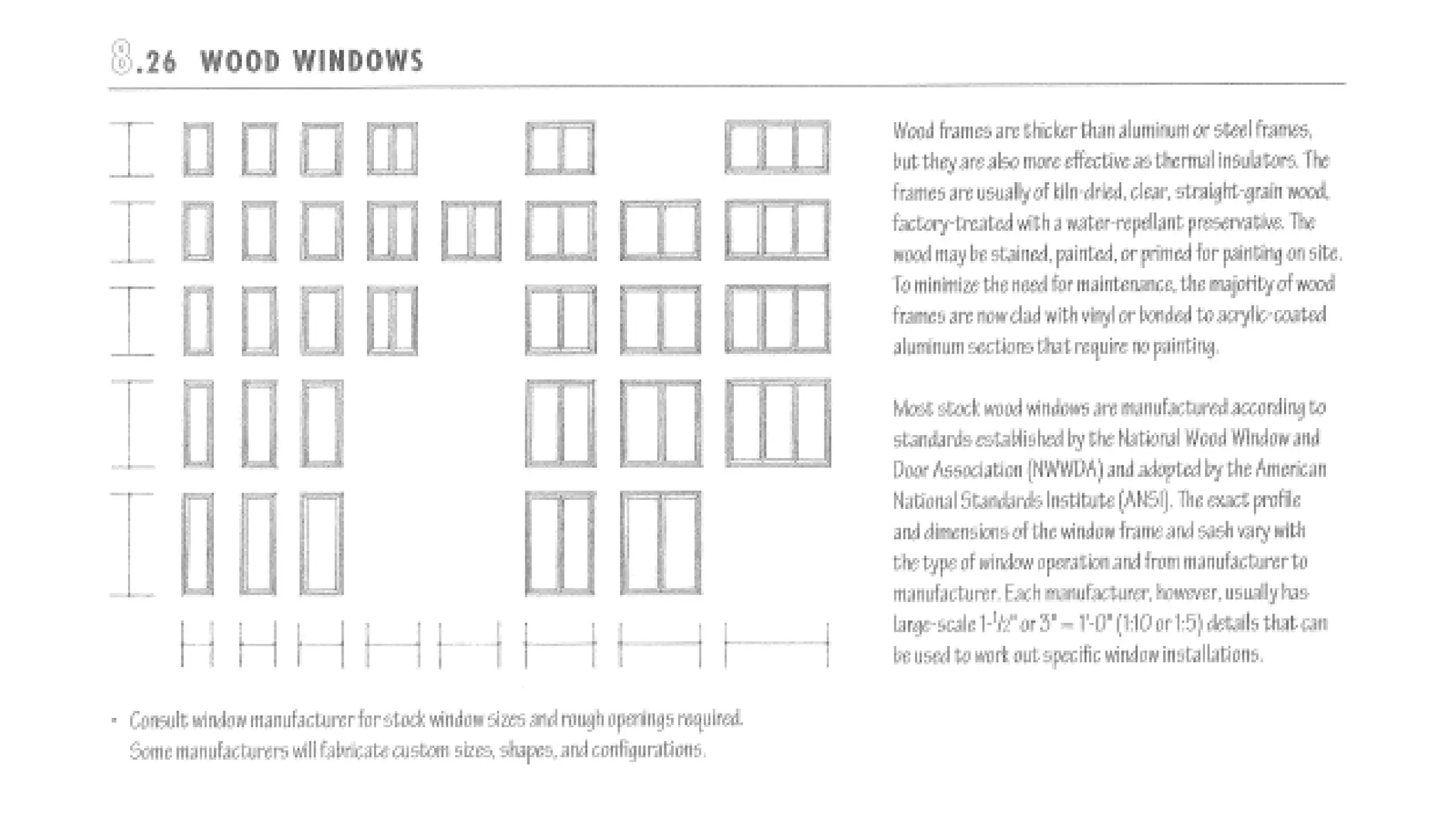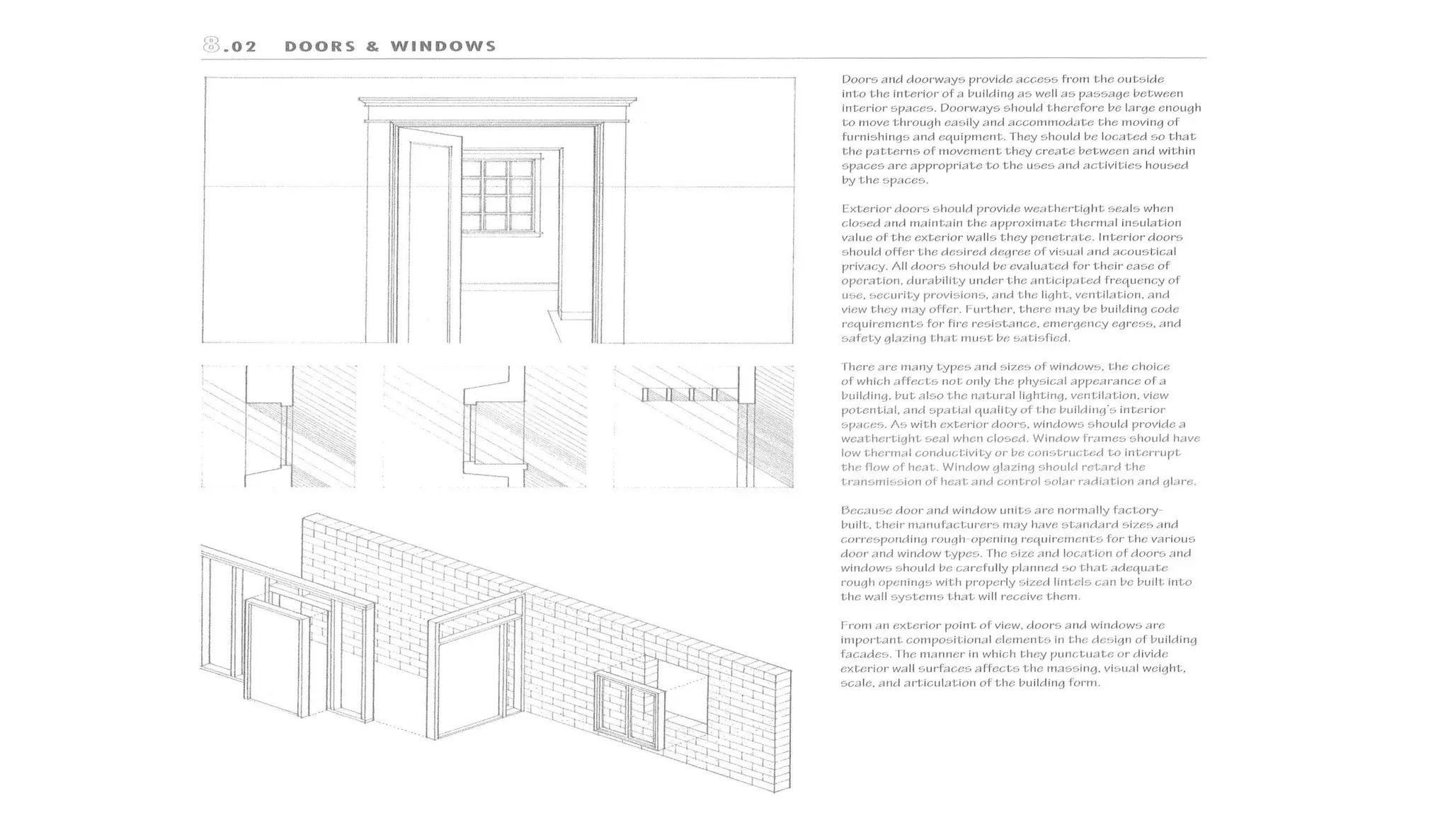 The document outlines various architectural drawing tasks, including plans and elevations for different types of doors and windows. It specifies the need for accessible door maneuvering clearances and requires drawings for hollow metal, wood flush, wood rail & stile, sliding glass, folding, pocket sliding, and revolving doors. Additionally, it calls for drawings of four different window operation types.