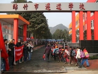 文档描述了2008年四川省绵竹市遵道镇的最后一节课,强调学生们对新学校的期待。文中提到地震后志愿者的照片与如今的笑容对比,以及学生们对新教室的欣赏和对课桌椅的责任感。内容充满了希望与重建的主题。
