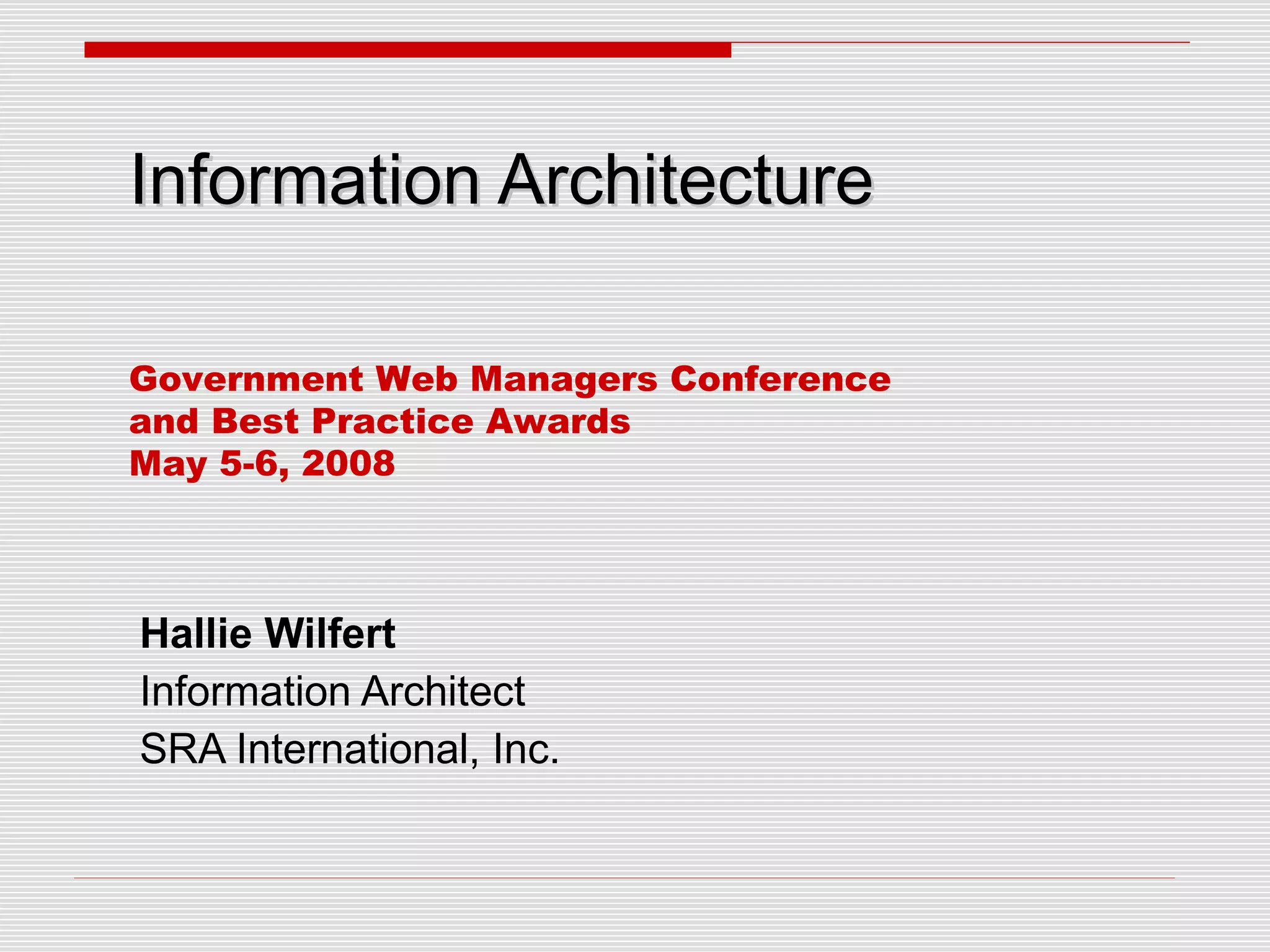 3) Best practices for information architecture include user research methods like content audits, card sorting, task analysis and usability testing to understand users and design accordingly. Consistency, standards, and a user-centered approach are important.