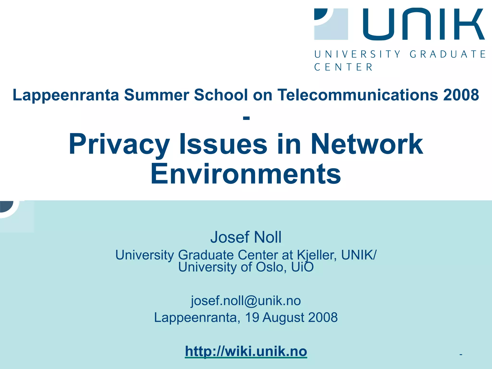 The document discusses various factors that influence privacy such as cultural sensitivity, personal dignity, and safety concerns. It examines different types of privacy including physical, informational, and organizational privacy. Additionally, it explores related concepts like identity, reputation, and trust in the digital world and how information about individuals is exposed through electronic traces online.