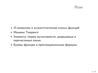 Tài liệu trình bày các khái niệm về độ lớn hàm số, bao gồm các nhóm hàm như poly, exp, và log. Nó giải thích sự so sánh giữa các hàm bằng các ký hiệu o, ω, θ để xác định sự tăng trưởng của chúng. Các định nghĩa và ví dụ được đưa ra để minh họa các quy tắc và mối quan hệ giữa các loại hàm trong toán học.