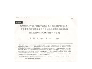 3) The document concludes that FPP and barbecue maneuver remain first choice treatments for HC-BPPV, while rapid head rotation can be used for intractable cases, especially cupulolithiasis cases. Nystagmus direction depends on