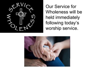 The document provides announcements for Chapel By The Sea church. It announces upcoming services and classes including a pastor's Sunday school class. It also announces that the youth group volunteered at a soup kitchen and upcoming volunteer appreciation event. New programs are announced like an after school program and Beach Praise informal monthly worship.