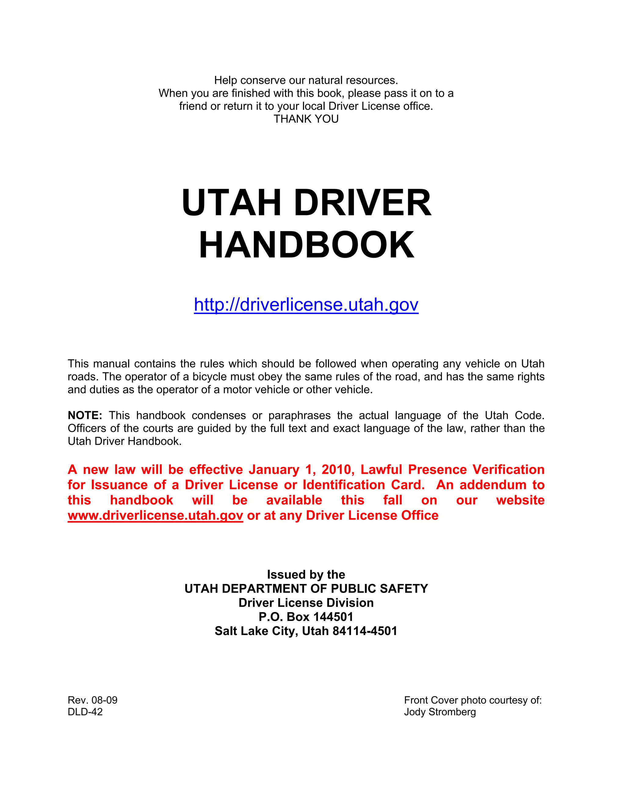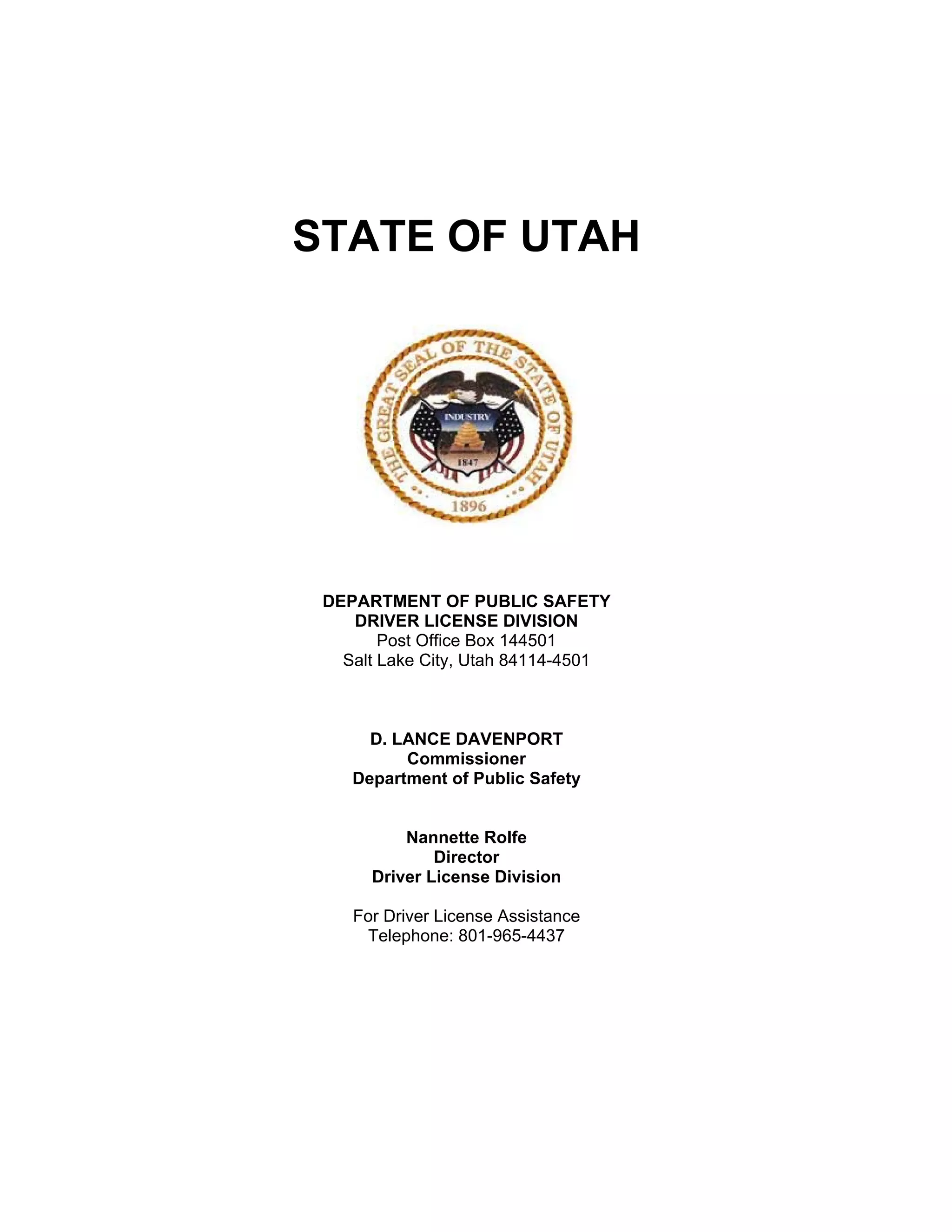 This document summarizes Utah's driver license regulations. It outlines who needs a Utah driver's license, exceptions for non-residents, and conditions under which a person may not be issued a license. It also briefly discusses Utah's participation in the Driver License Compact and Non-Resident Violator Compact to facilitate cooperation on driver licensing between member states.