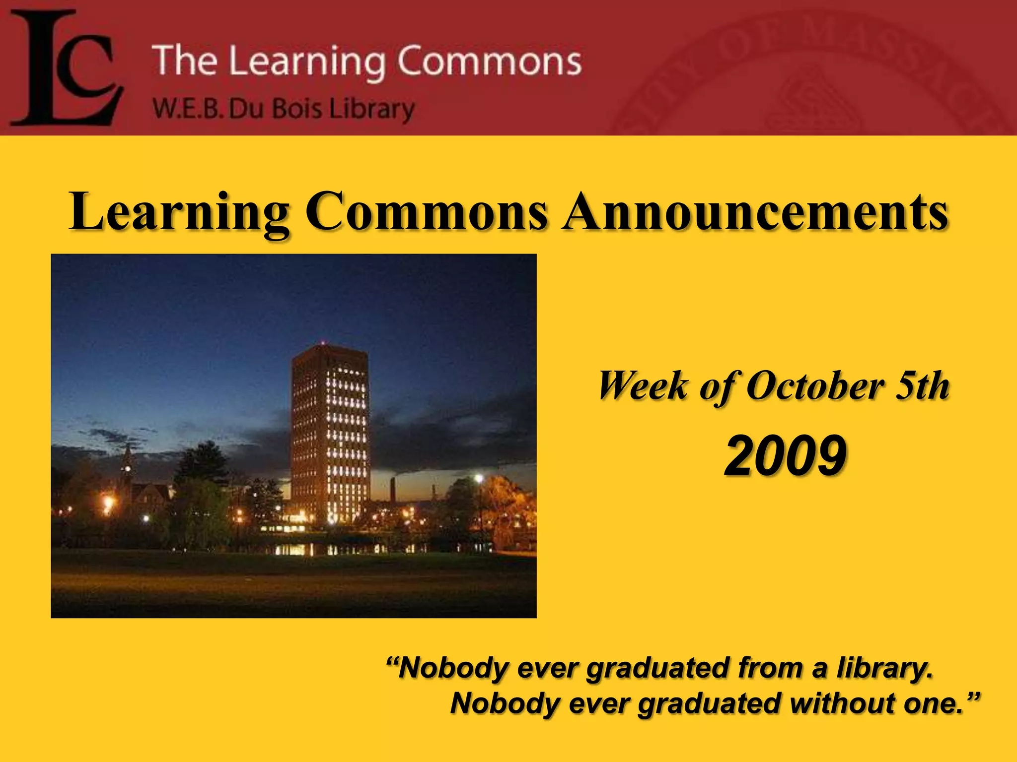 The Learning Commons announcements for the week of October 5th, 2009 included the following: