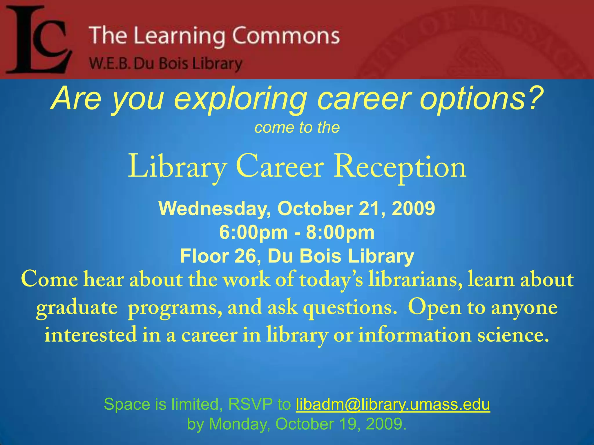 - An upcoming career reception for those interested in library and information science careers. RSVPs were due by October 19th.