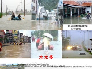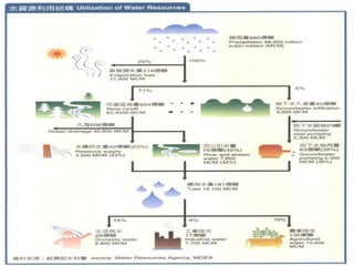 虛擬水資源 (Virtual Water)的定義 Virtual Water The water that is used in the production process of an agricultural or industrial product is called the 'virtual water' contained in the product …… (Tony Allan, 1997) 泛指糧食作物在 製造生產過程 中所消耗—但消費者在食用時並未真正喝到的水量。 國家以貿易的形式出口產品,則實際上是以 虛擬 的形式出口「水資源」 。 缺水地區可以貿易的方式購買耗水度高的農產品來達到水和糧食的安全。