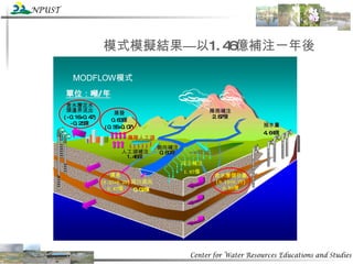 Location map ofPingtung Plain Schematic section of hydrogeological conceptual model The purpose of the study was to gain a better understanding of the recharge system, infiltration velocity and the added groundwater amount after conveying surface water to the Infiltration basin. In this way the influence of the quantity of introduced water on groundwater recharge dynamics could more easily be understood.