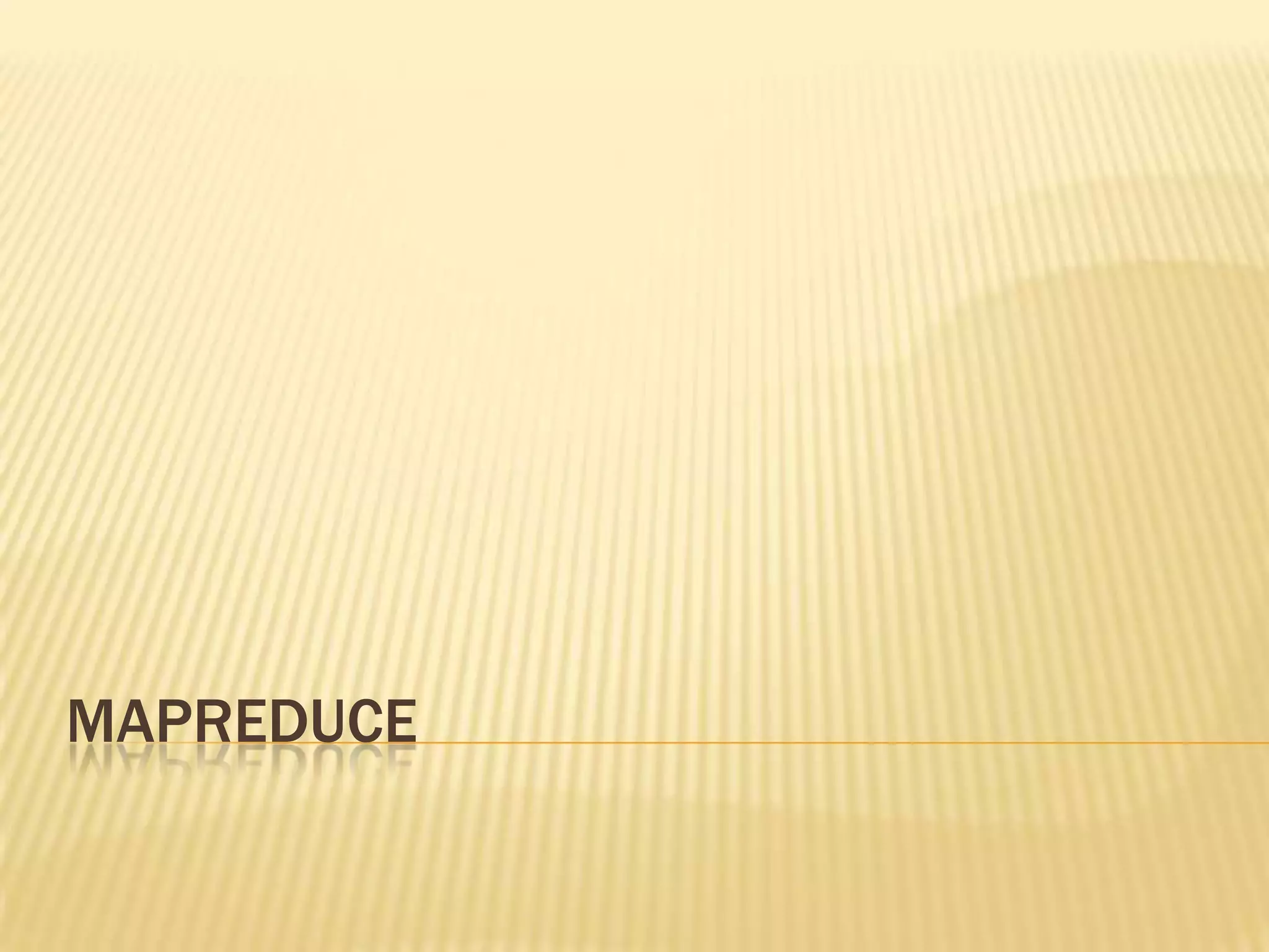 MapReduce is a software framework that allows processing of massive datasets across distributed computers. It uses a simple programming model where a problem is broken down into map and reduce phases. In the map phase, data is converted to key-value pairs and in the reduce phase, all values associated with a key are processed to generate results. As an example, a word frequency count of Wikipedia could be generated using MapReduce by splitting the data, mapping each split to count word frequencies, shuffling by key, and reducing to generate final counts.