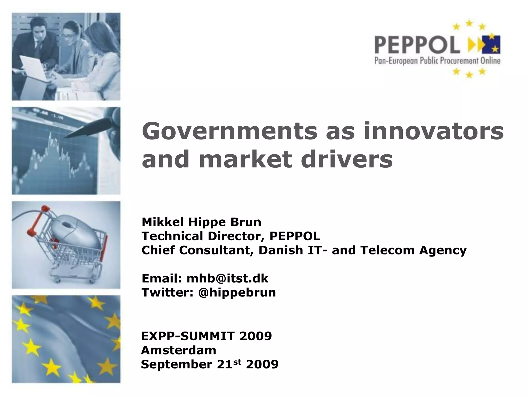 The document discusses the role of governments in driving innovation and standardization in e-invoicing and procurement processes. It outlines the potential future landscape of e-invoicing in Europe, highlighting significant adoption rates among SMEs and public sectors, alongside challenges such as varied business requirements and incompatible systems. The text emphasizes the need for a governance framework and infrastructure support to facilitate seamless e-invoicing and calls for private sector involvement while minimizing public sector standardization efforts.