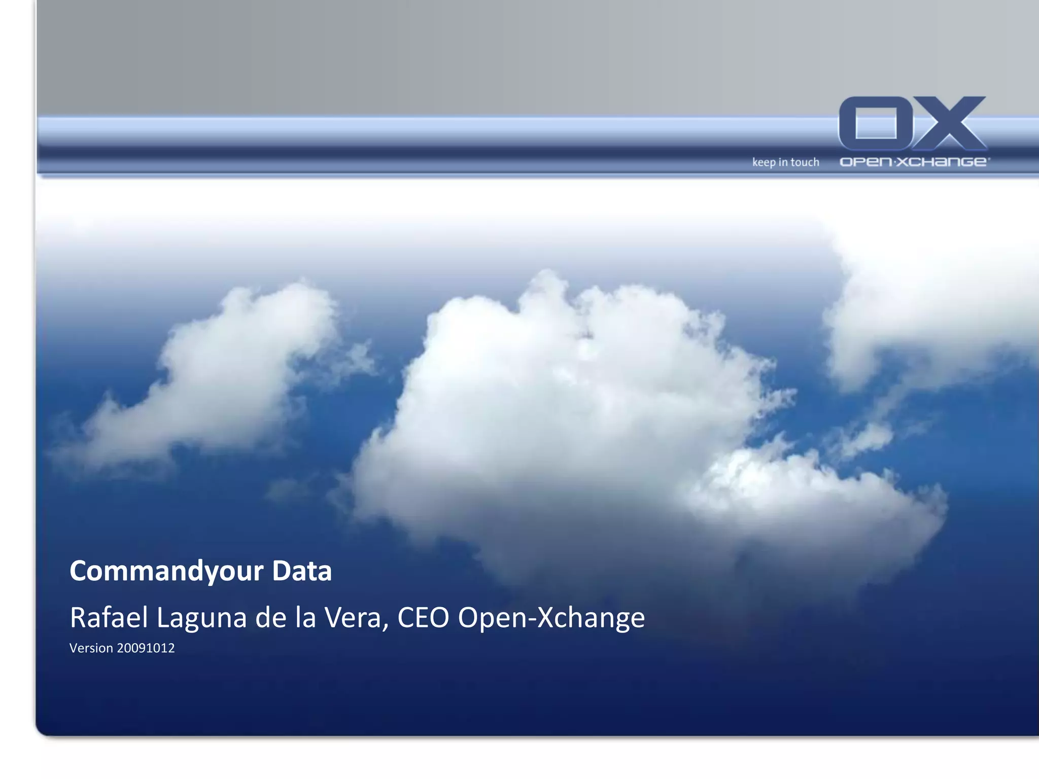 The document discusses the evolution of the internet, emphasizing the transition from personal computers to a connected world driven by open standards, open source software, and the rise of Software as a Service (SaaS). It highlights the challenges of data control in proprietary cloud environments and the importance of user-centric data ownership. The future is presented as a 'command your data' vision advocating for user empowerment and a shift towards peer-to-peer technologies.