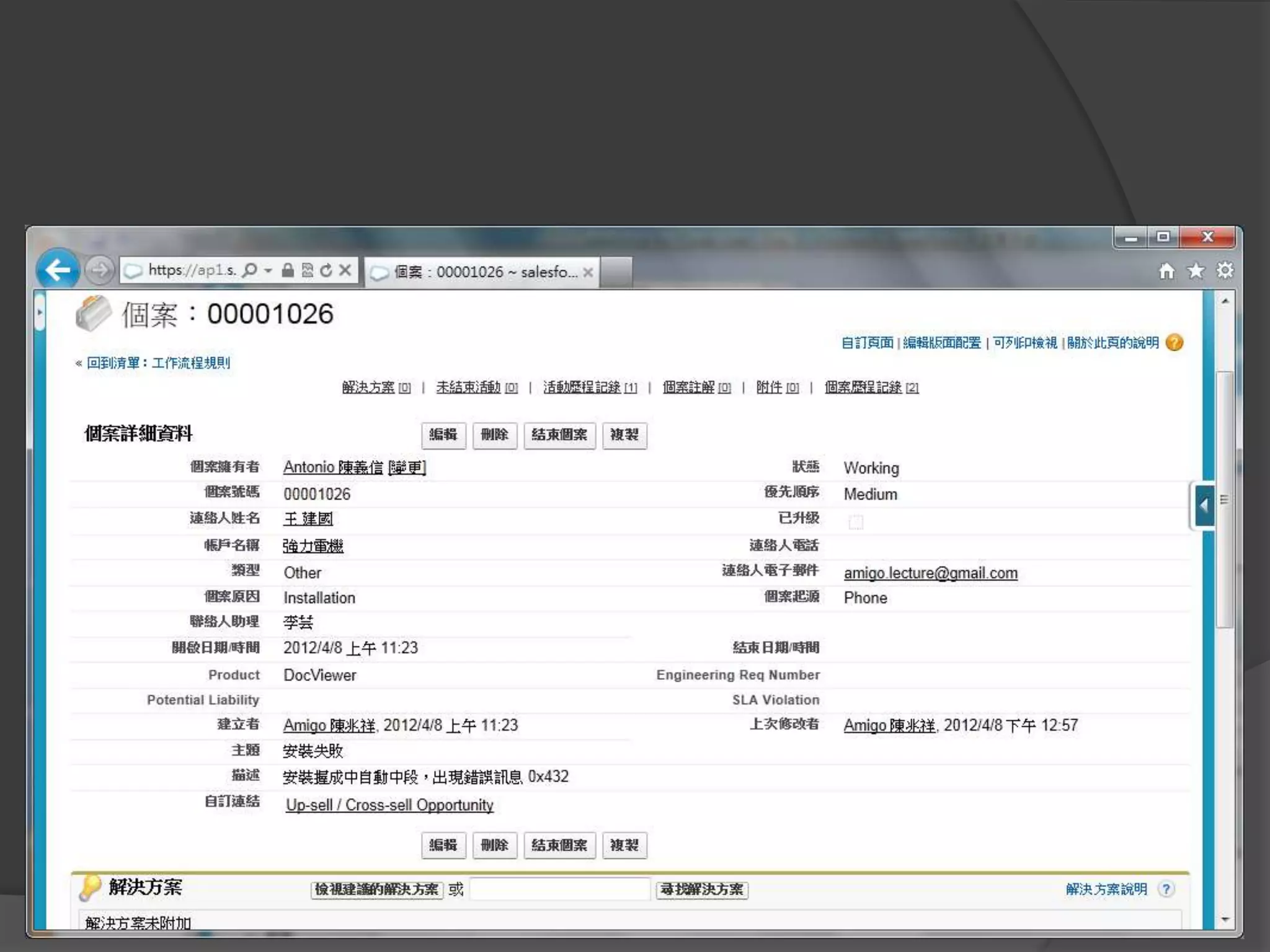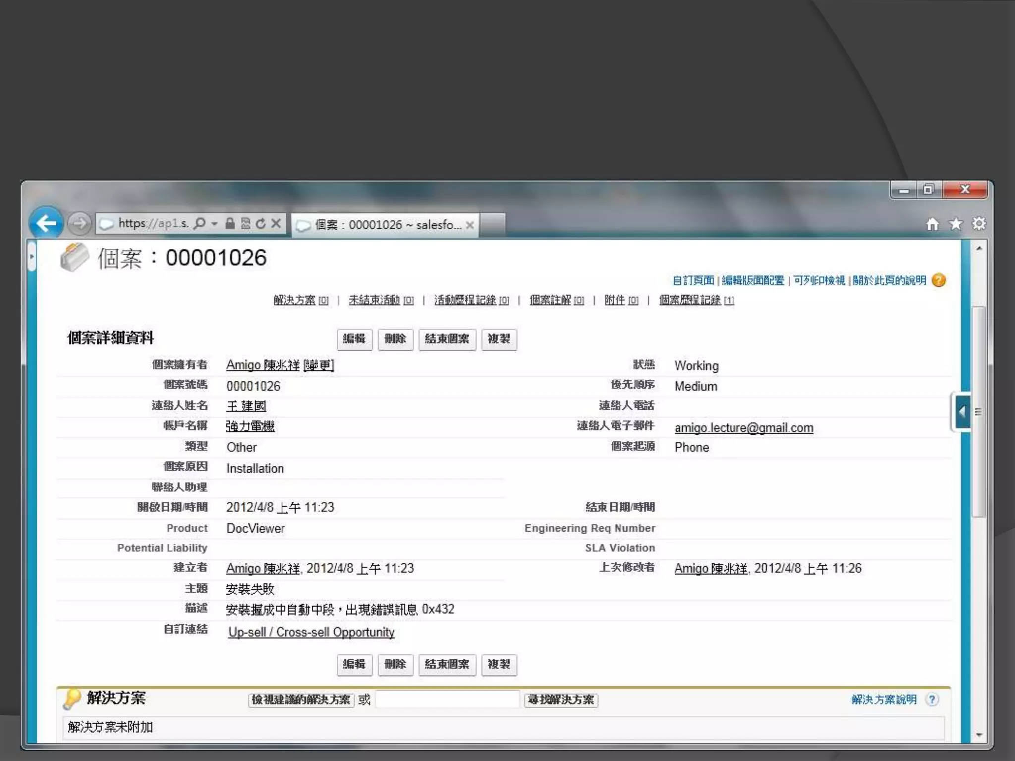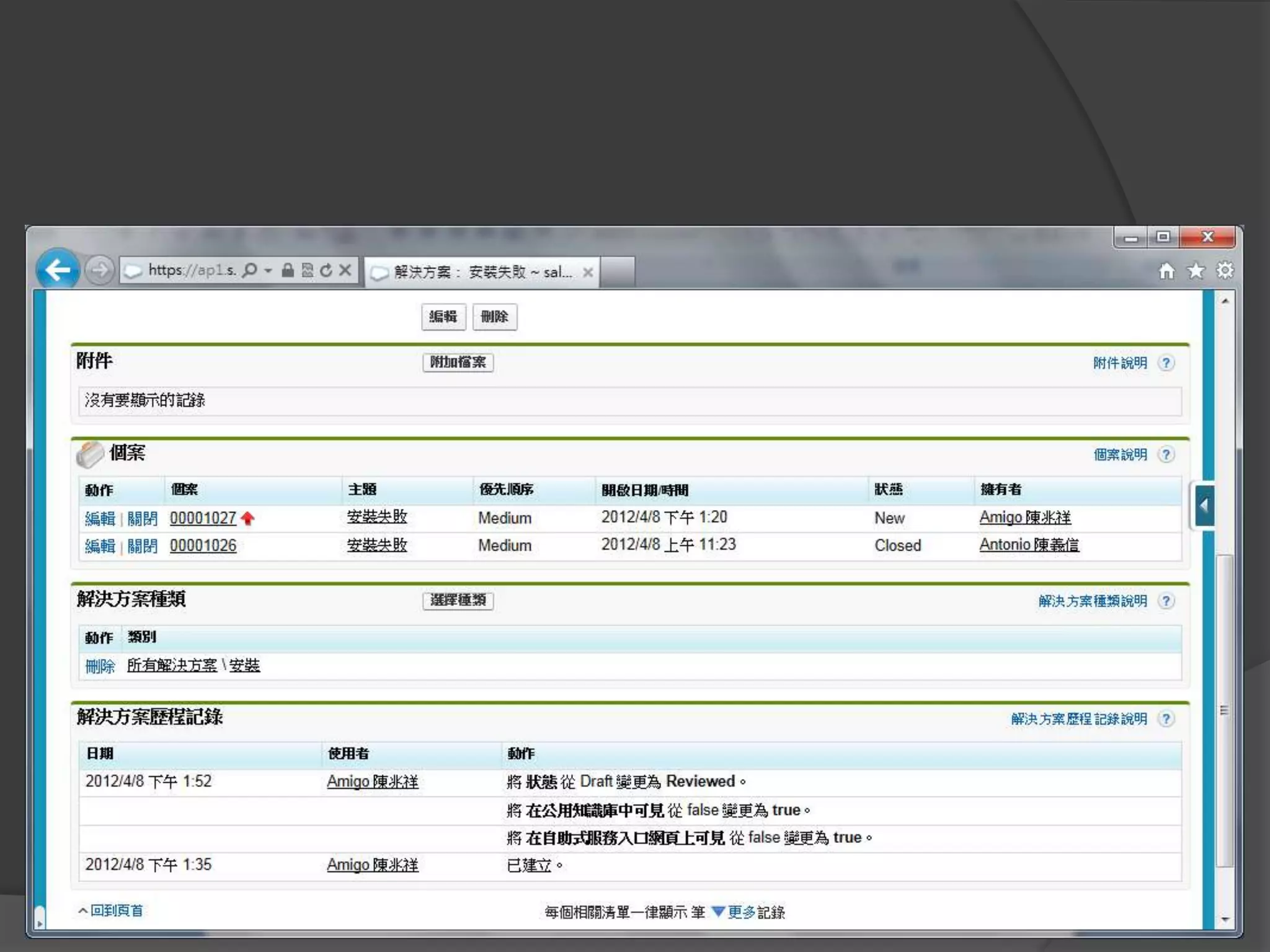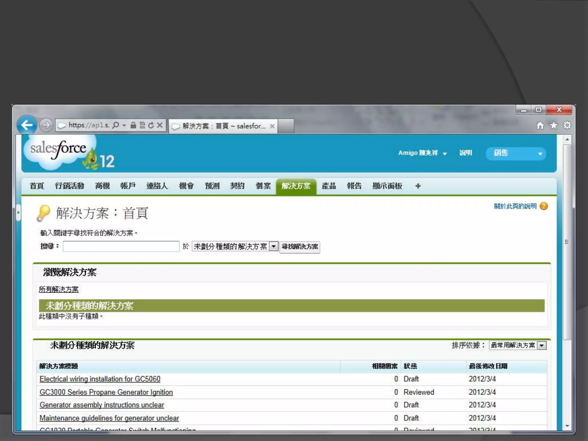 This document discusses features of a cloud-based customer relationship management (CRM) system for managing customer service and knowledge. It describes how the CRM allows customers to log cases, view case status, search knowledge bases for solutions, and view reports and dashboards. It also discusses how the system streamlines the case resolution process, provides a customer portal for self-service support, and enables reports and dashboards.