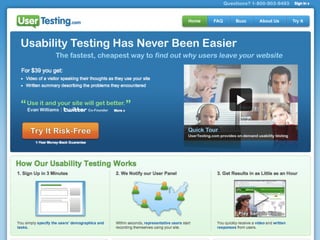 This document discusses the evolution of quantifying user experience over time. It traces the development of tools and methods for observing user behavior from pen and paper tests in the 1980s to modern remote usability testing platforms in 2009. Both qualitative and quantitative methods are examined, ranging from conceptual attitude-based approaches to concrete behavior-based metrics. The document advocates combining both qualitative and quantitative data sources to develop a robust understanding of user experience.