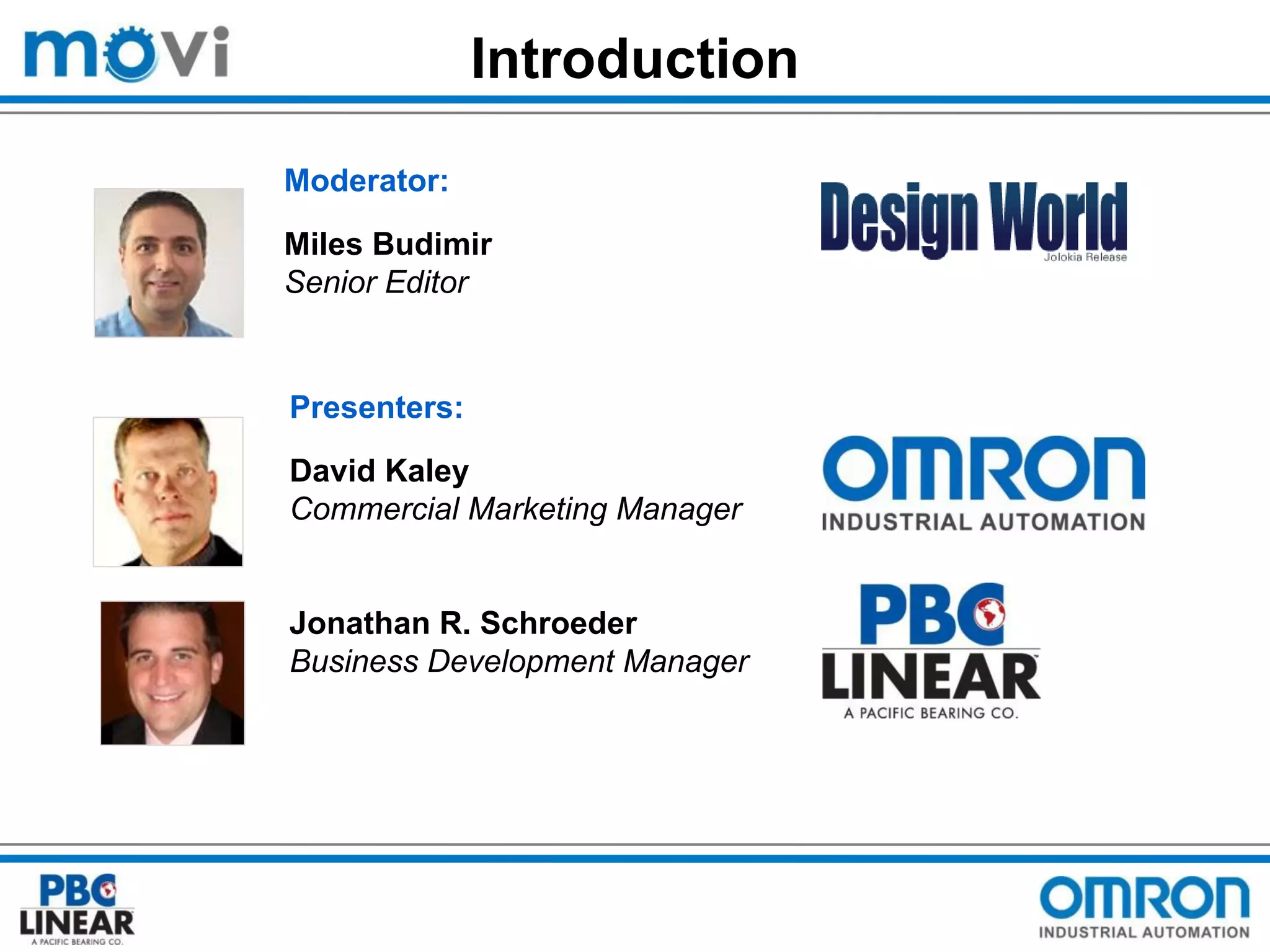 The document discusses the convergence of motion and vision technologies, highlighting the integration of these systems in various applications such as bottle inspection, lab automation, and automated storage and retrieval. Key challenges include speed, accuracy, and communication, while benefits encompass reduced design cycles and less technical conflict. It emphasizes collaboration between companies like Omron and PBC Linear to enhance product compatibility and functionality.
