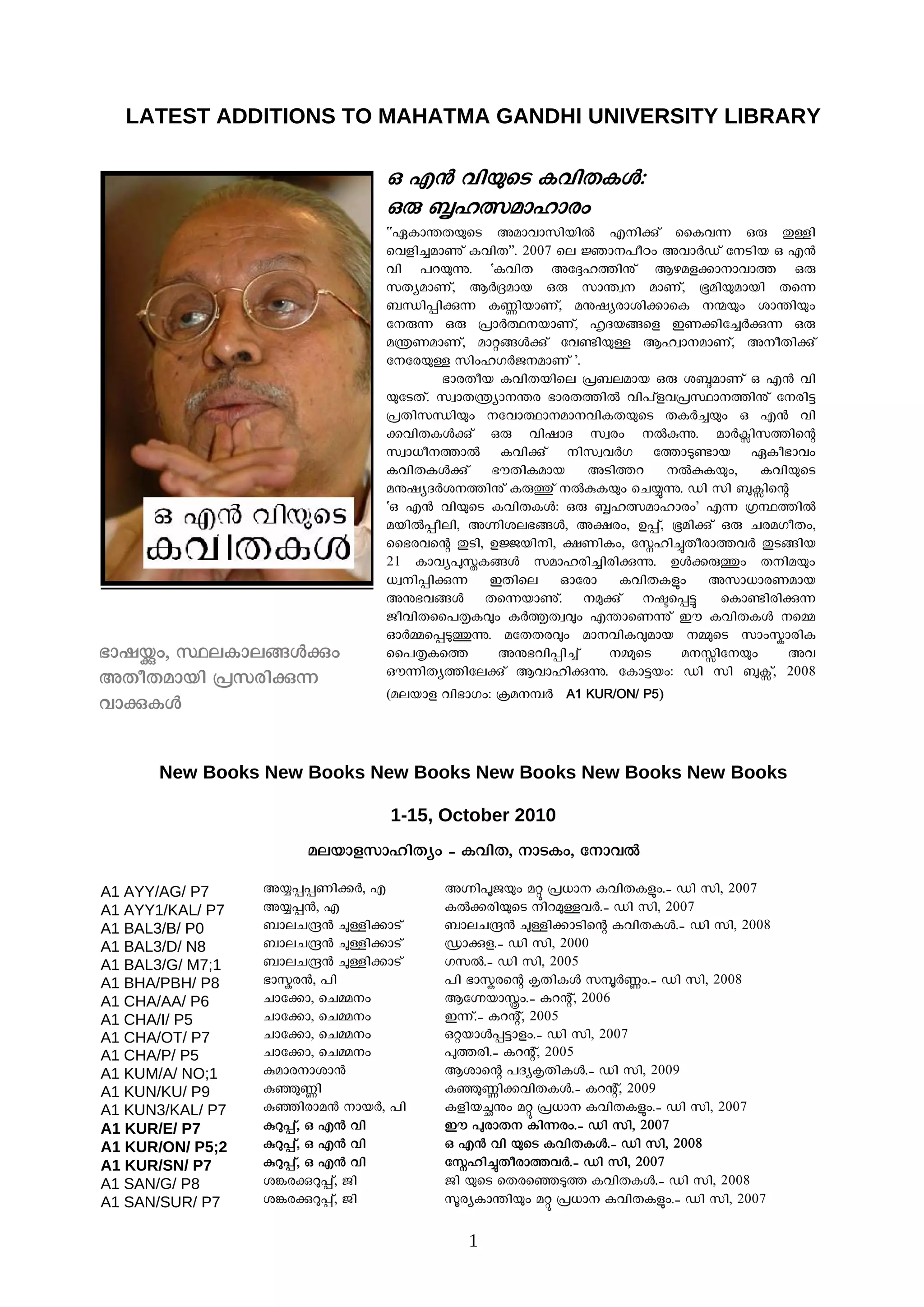 The document provides a list of new additions to the Mahatma Gandhi University library in 3 sections: