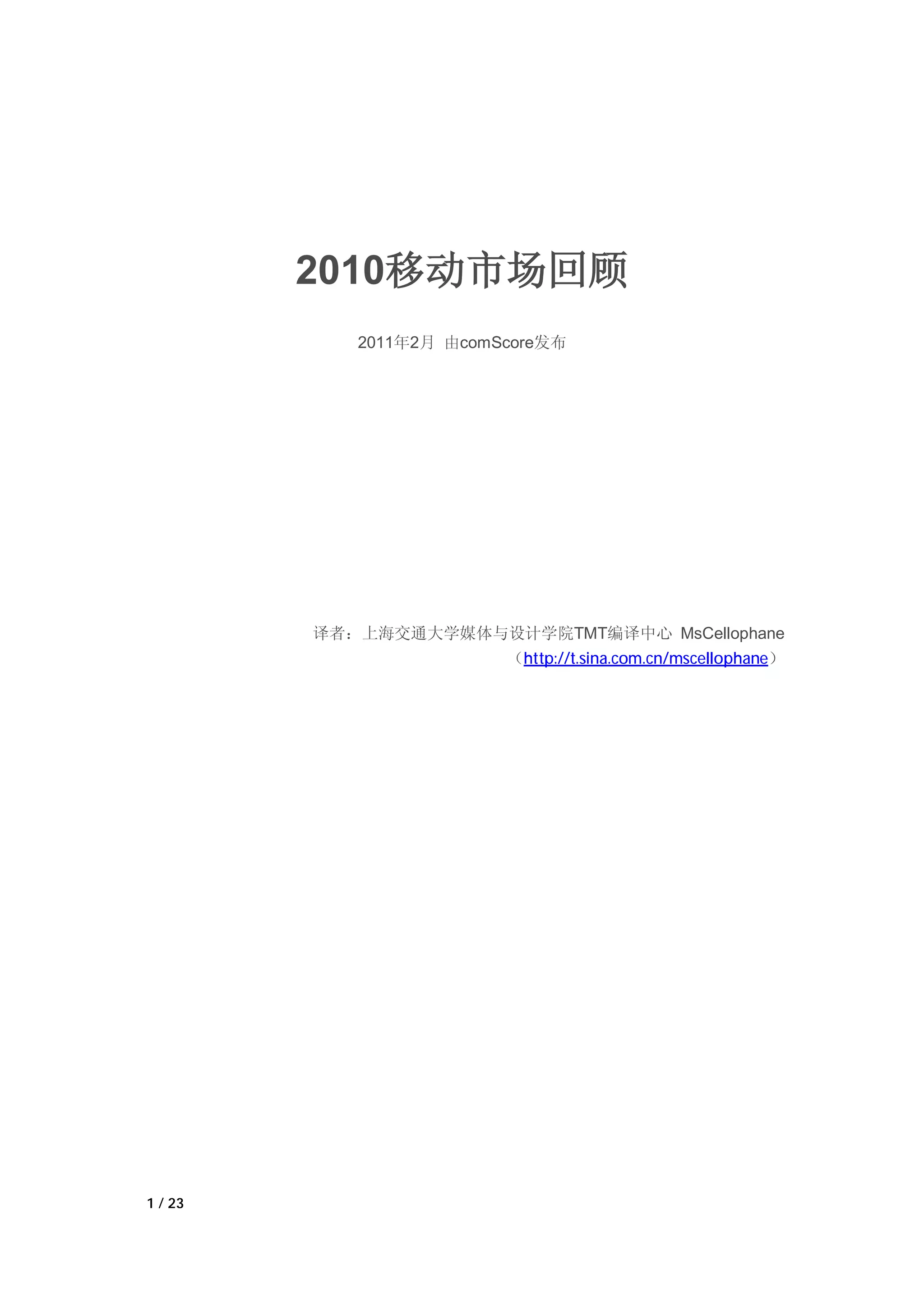 2010年的移动市场报告分析了移动设备、智能手机以及移动媒体的使用趋势,指出智能手机的使用率和无限数据计划的普及显著推动了移动媒体的增长。美国在智能手机市场中表现出强劲增长,而欧洲市场则在短信和3G使用上保持领先。报告同时强调,设备技术的进步和消费者对网络质量的关注成为购买决策的重要因素。