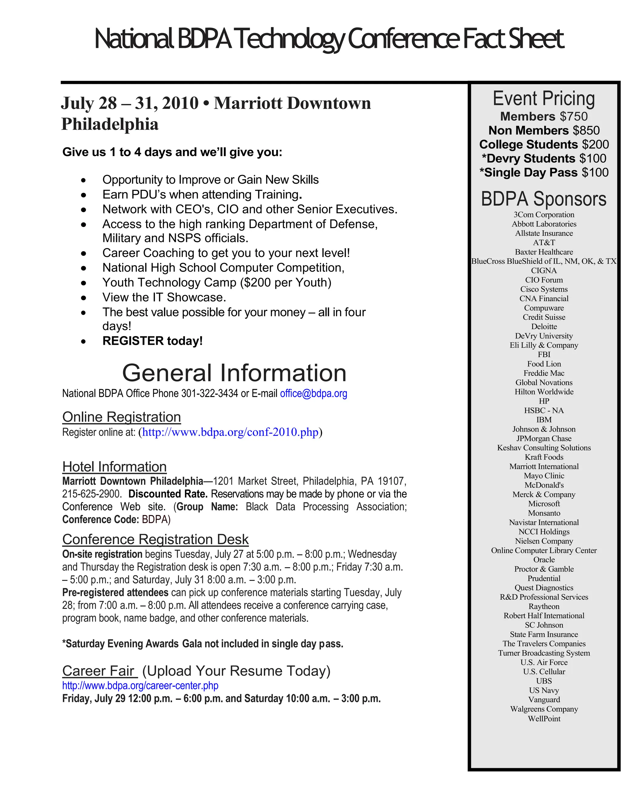 2010 BDPA Technology Conference Fact Sheet (Rev: Jul 2010)