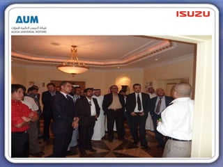 This document provides an overview of the commercial vehicle market in Saudi Arabia in 2010. It summarizes sales data and market share for various vehicle brands and models. It also reviews the performance of Alissa Universal Motors, the authorized Isuzu dealer, including their sales targets, marketing activities, and business plans for 2011. Key highlights include Isuzu maintaining the leading market share in pickup trucks, and Alissa Universal Motors achieving over 100% of their October 2010 sales target. Their marketing activities for 2010 are summarized, as well as their outlined strategies for sales and marketing in 2011 with a focus on increasing market share and sales.