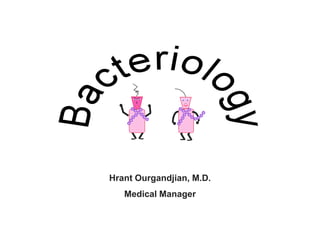 Micro-organisms can be divided into 4 main groups: bacteria, protozoa, fungi, and viruses. Bacteria are the smallest and most primitive of these microbes, lacking nuclei and existing as single cells or colonies. Viruses are even smaller and simpler, able to replicate only inside host cells. More complex microbes include protozoa, which have true nuclei, and fungi, which resemble primitive plants. An overview of bacterial structure, classification, and important pathogenic species is provided, highlighting bacteria's role in causing infectious disease. The document also discusses how bacteria can become pathogenic and how the human body defends against infection.