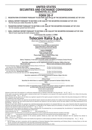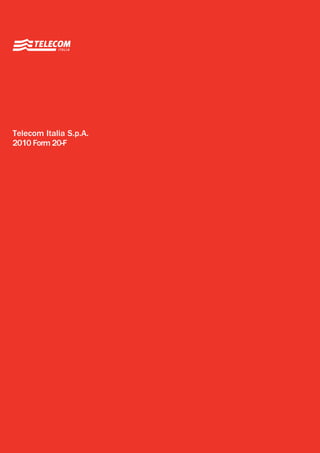 The document is a Form 20-F registration statement filed by Telecom Italia S.p.A. with the U.S. Securities and Exchange Commission for the fiscal year ending December 31, 2010. It includes information on the company's registration details, securities, outstanding shares, and financial performance, as well as a comprehensive overview of its operations, management, and relevant financial disclosures. The document serves as an essential report for investors and regulators regarding Telecom Italia's compliance with U.S. securities laws.
