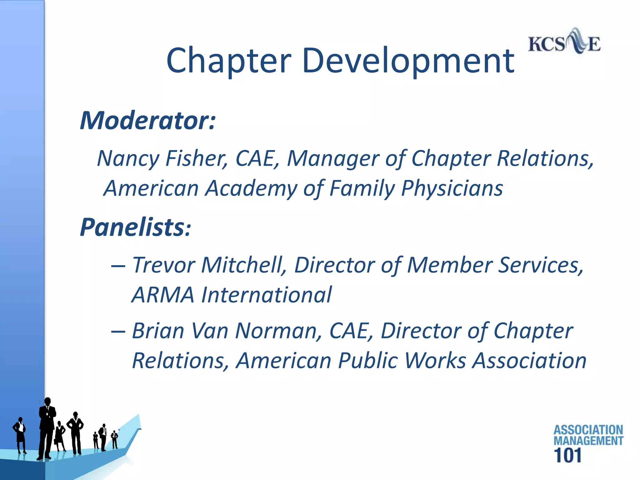 The document discusses various aspects of chapter development for associations, including typical chapter structures like geographic boundaries and size; dues collection processes; communication methods between national and chapter levels like publications and websites; leadership development programs; and fostering positive relationships between national and chapter organizations to provide value to members.