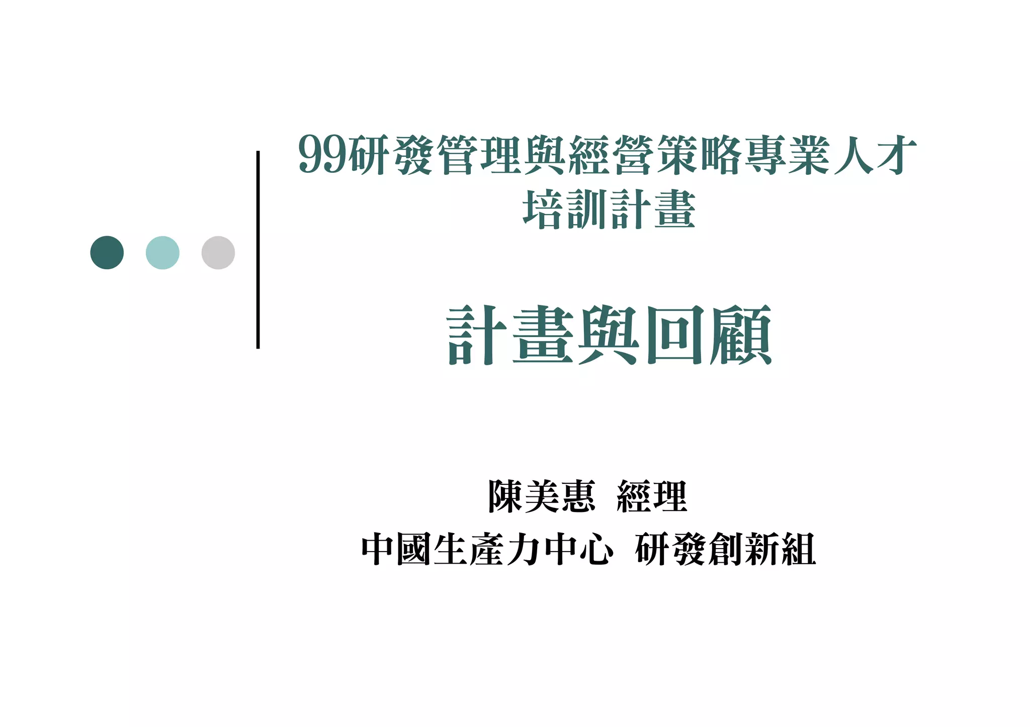 该文档介绍了99研发管理与经营策略专业人才培训计划的目的和设计,旨在提升技术人才的研发管理能力和创新思维。培训内容包括国内课程、国际研讨会以及企业实操案例,涵盖新产品开发、生态设计等多个方面,旨在促进企业的持续创新与战略规划。总体来说,该计划提供了多层次的培训和交流机会,以提升参与者在研发管理中的实际应用能力。
