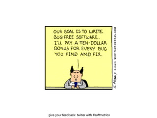 The document discusses the importance of software metrics in organizations for quality assurance, performance measurement, and process improvement. It outlines common challenges in implementing metrics, strategies for successful adoption, and emphasizes the need for a measurement culture to avoid misuse of data. Additionally, it provides a structured approach via a step-by-step framework to effectively introduce metrics into software development practices.