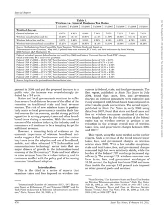 Wireless users in the United States face a growing tax burden from federal, state, and local governments. The average tax rate on wireless service is now 16.26%, over double the average sales tax rate of 7.42% and the highest since 2005. Much of the recent increase is due to rising federal Universal Service Fund fees, which help subsidize telecom services. State and local wireless taxes have also risen slightly. Taxes vary widely by location, with some local governments aggressively taxing wireless to address budget shortfalls. The high and growing tax burden on wireless conflicts with the policy goal of expanding broadband access.