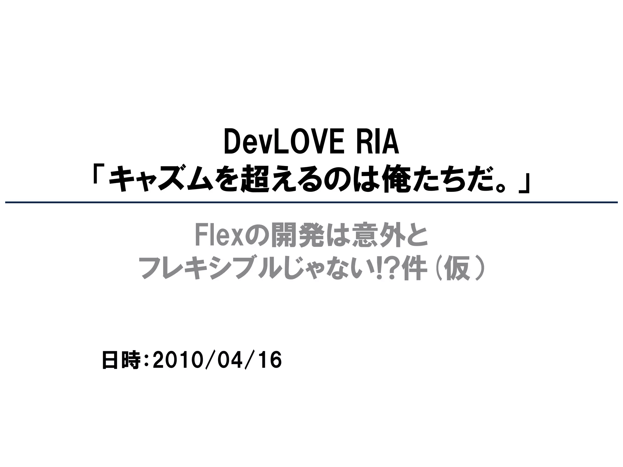 まとめ • Flex開発は(まだまだ)フレキシブルじゃない –から、力を入れるところとそうじゃないところを仕訳する •