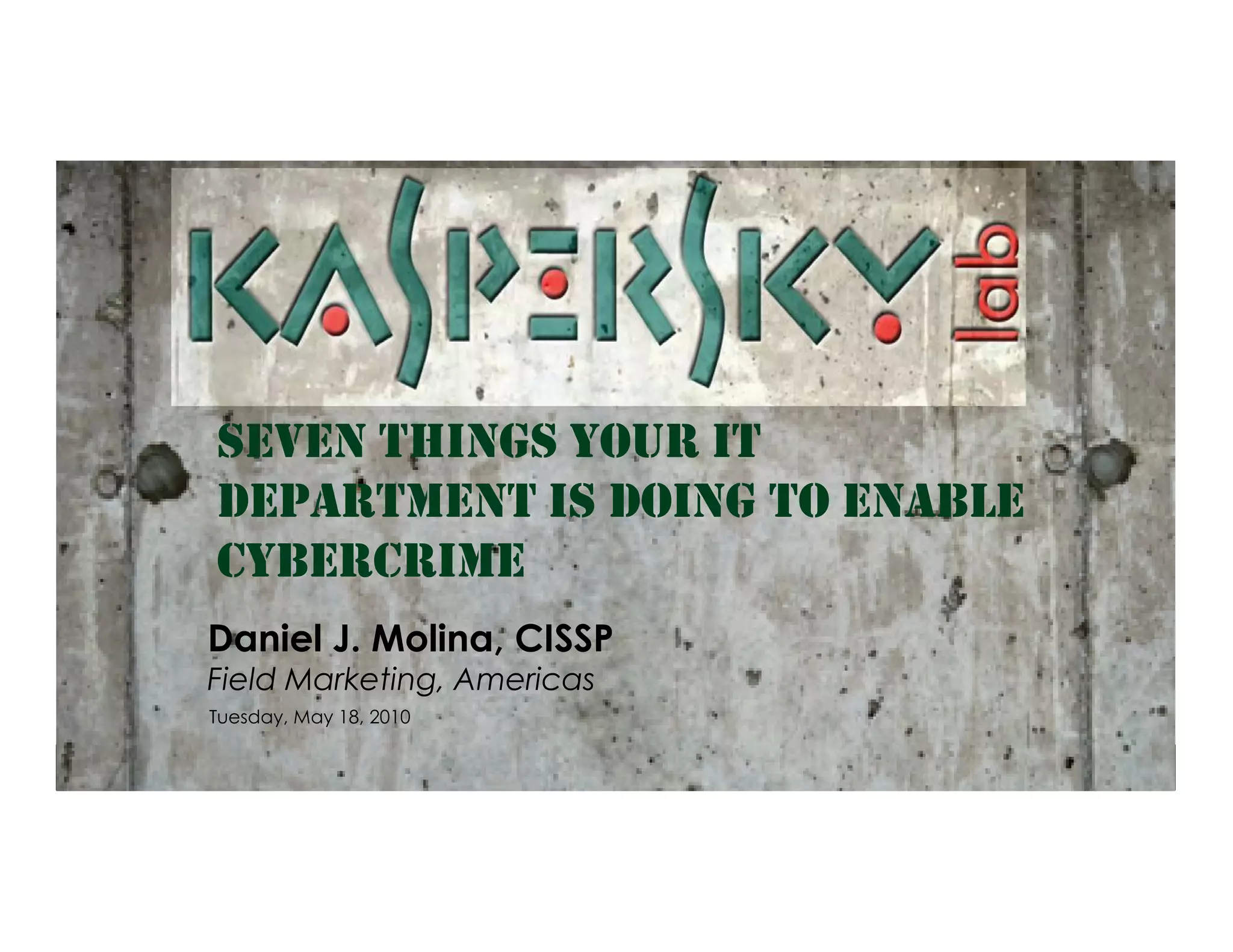 The document discusses the increasing risks posed by malware and inadequate IT security measures in light of the growing use of mobile devices and cloud applications. It emphasizes the importance of valuing data over physical assets and suggests a need for updated security approaches that account for the realities of data security in mobile and social media contexts. The author stresses the necessity of integrating security measures into business processes rather than relying solely on IT departments.